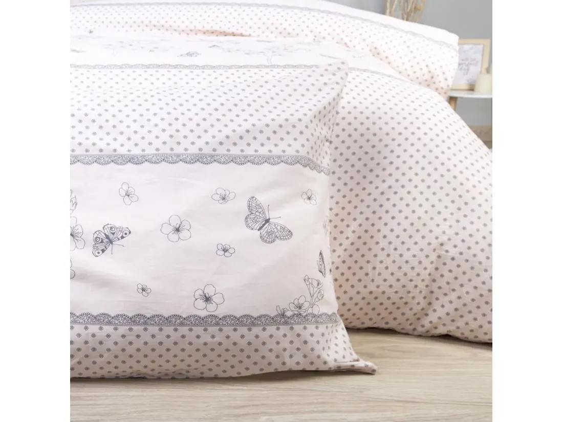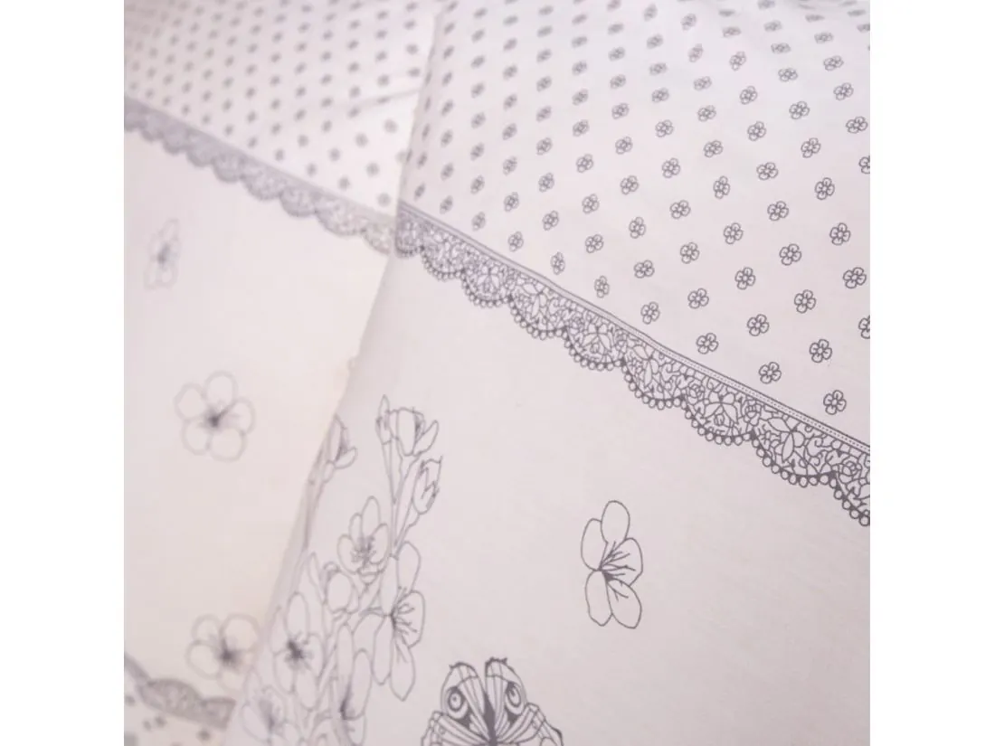 Pościel satynowa 160x200 + 2/70x80 Love wz. 1515/1 kwiatuszki motylki