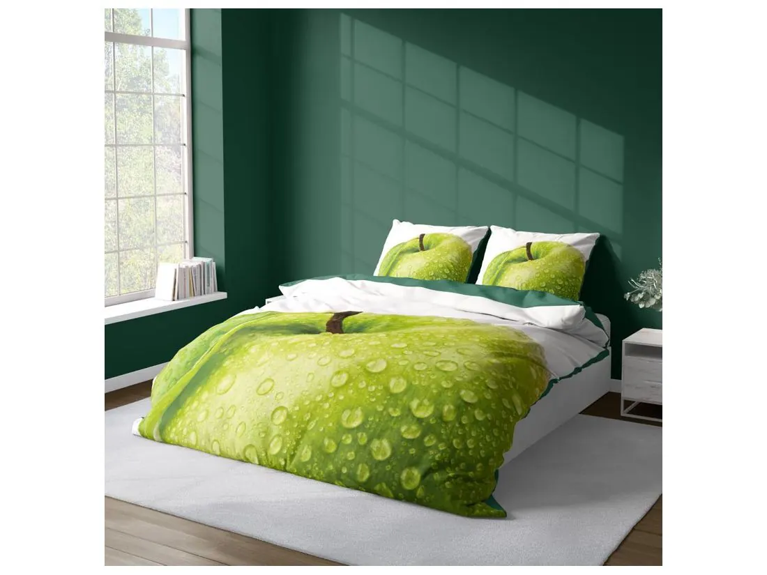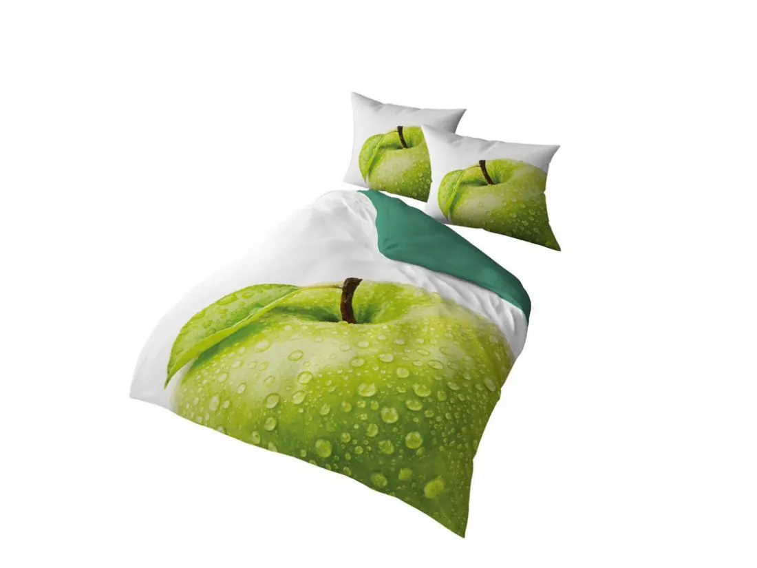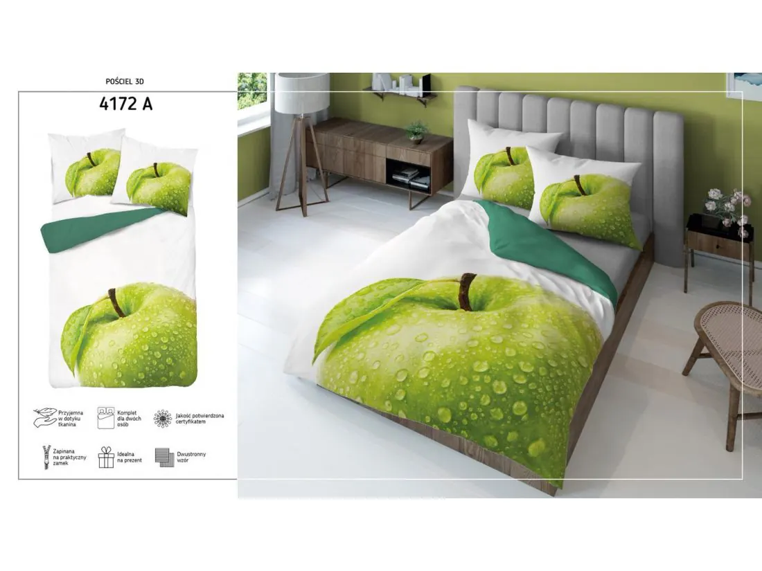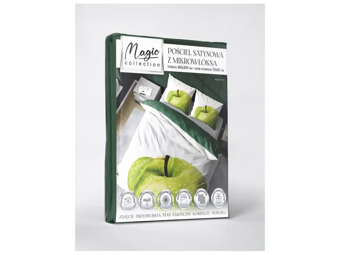 Pościel satynowa 160x200 +2/70x80 z mikrowłókna magic collection 4172 a 3D zielone jabłuszko