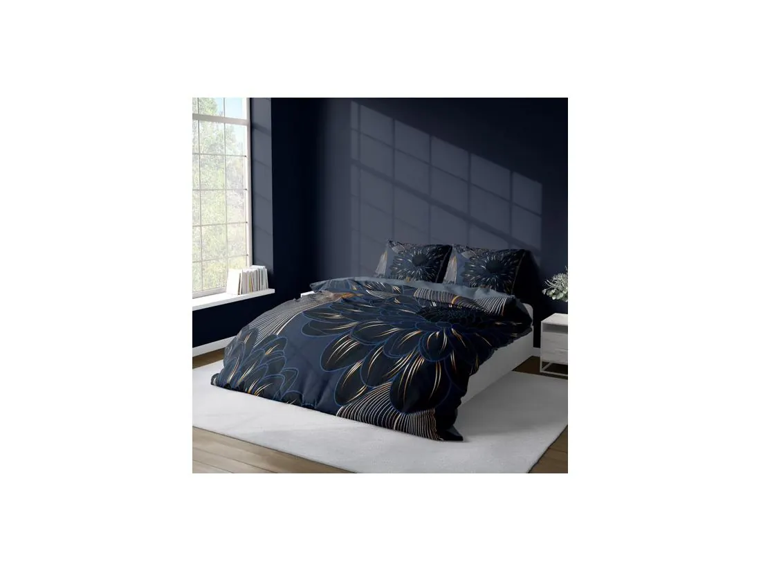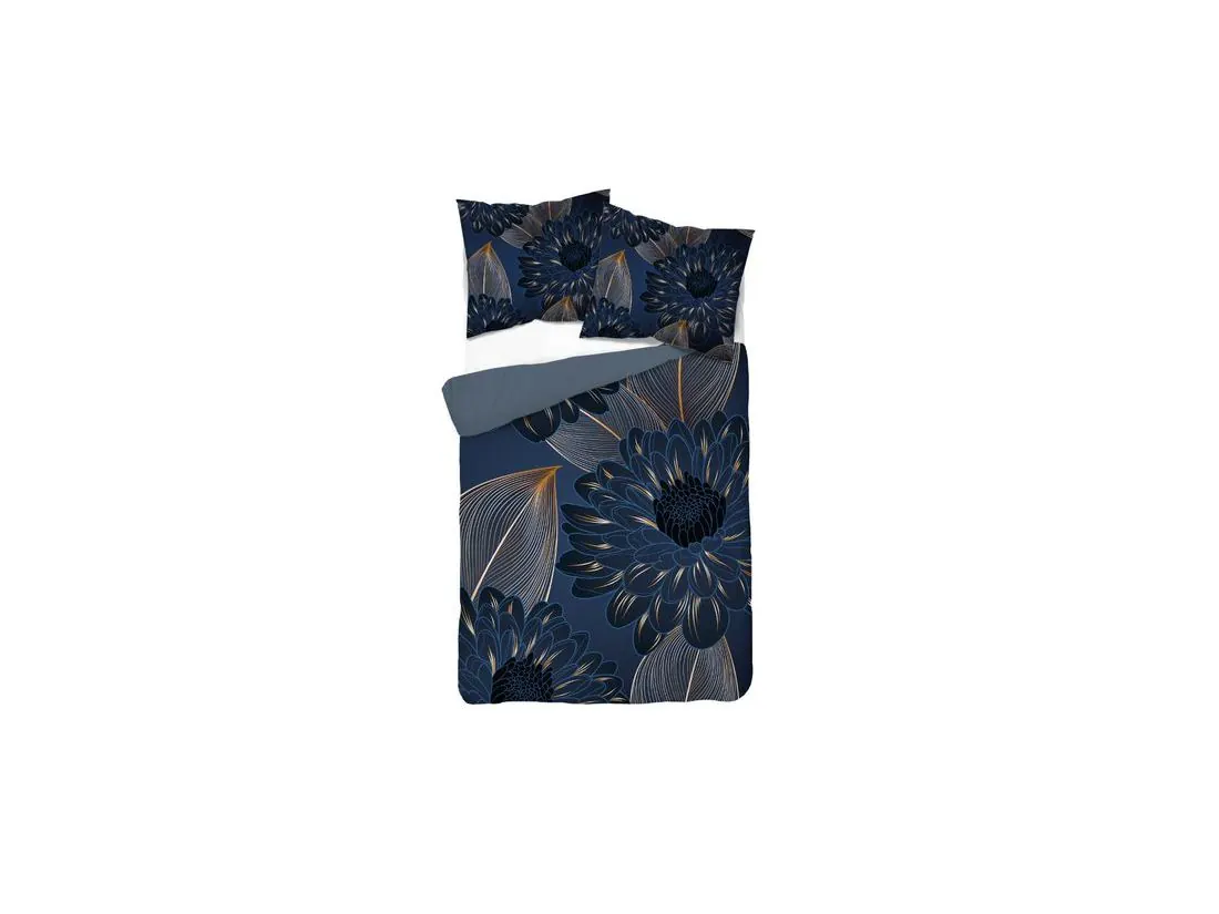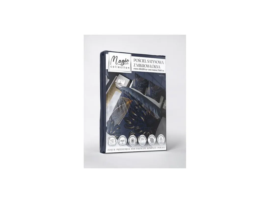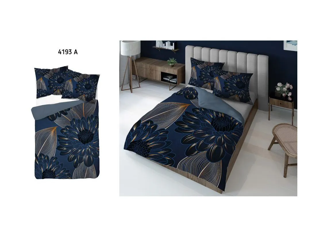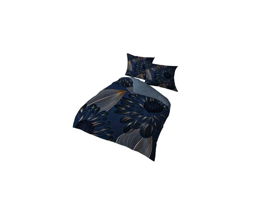 Pościel satynowa 160x200 +2/70x80 z mikrowłókna magic collection 4193 a 3D kwiat granatowy