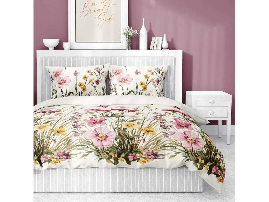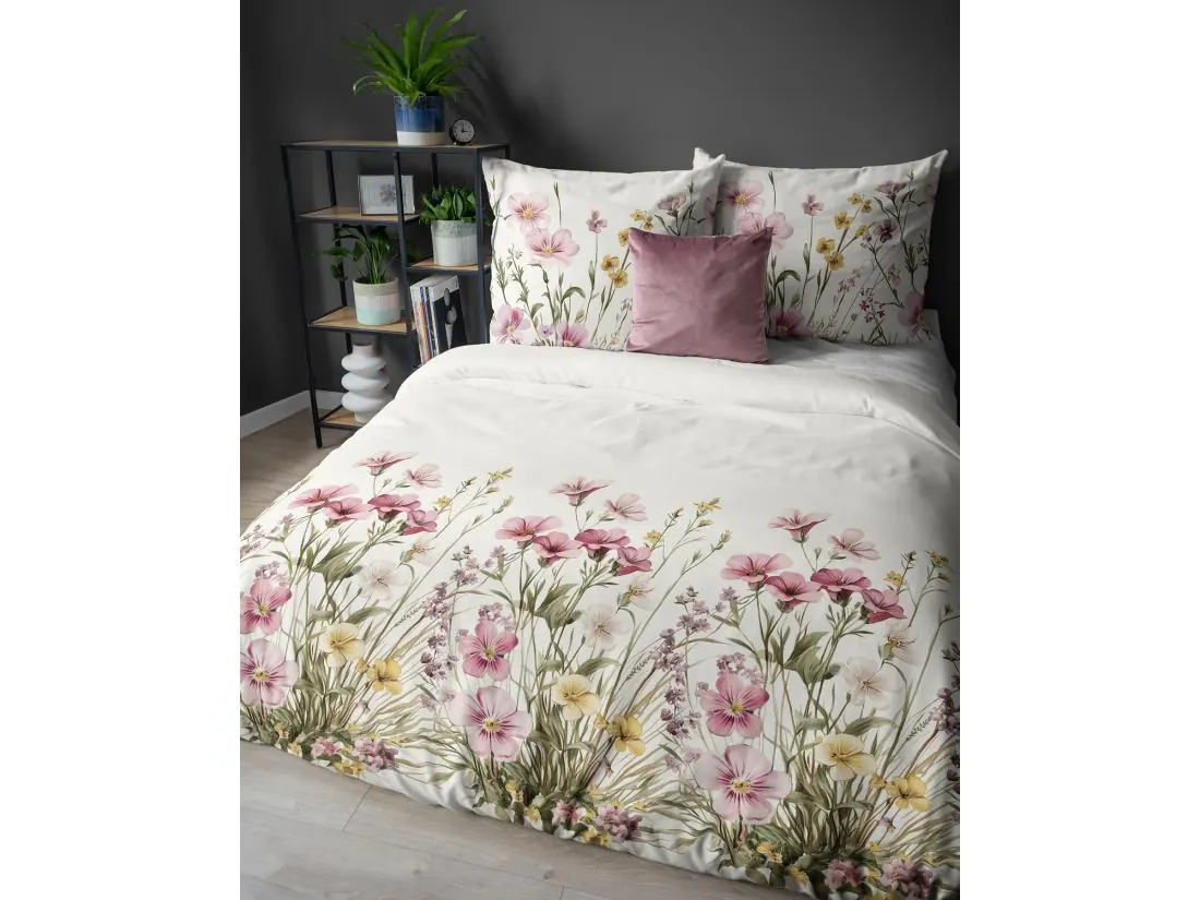 Pościel satynowa 160x200 kolorowe bratki na jasnym tle 5537 a