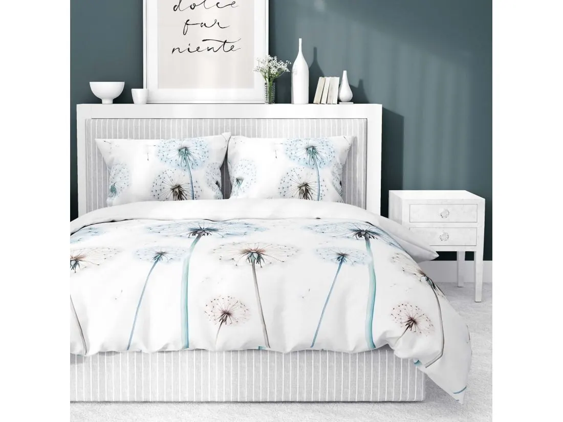Pościel satynowa 160x200 turkusowe dmuchawce na białym tle 5542 a