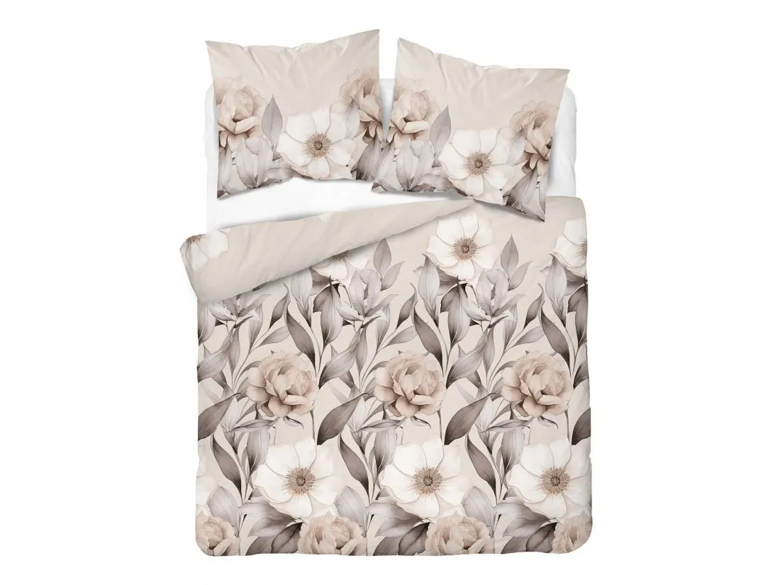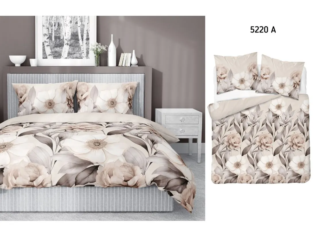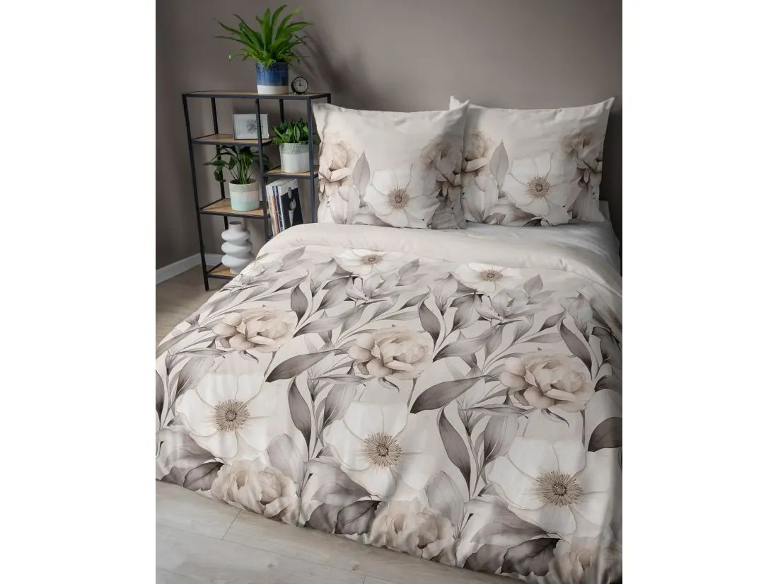 Pościel satynowa 160x200+2/70x80 beżowe begonie, wz. 5220 a detexpol