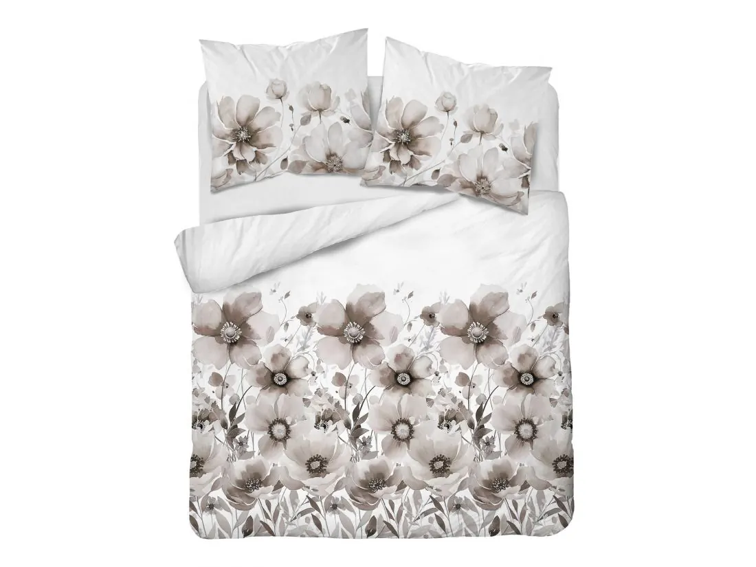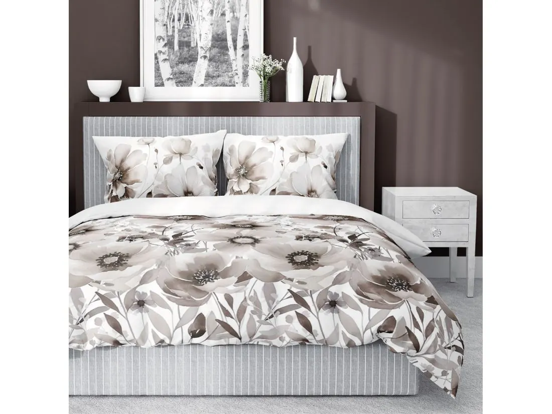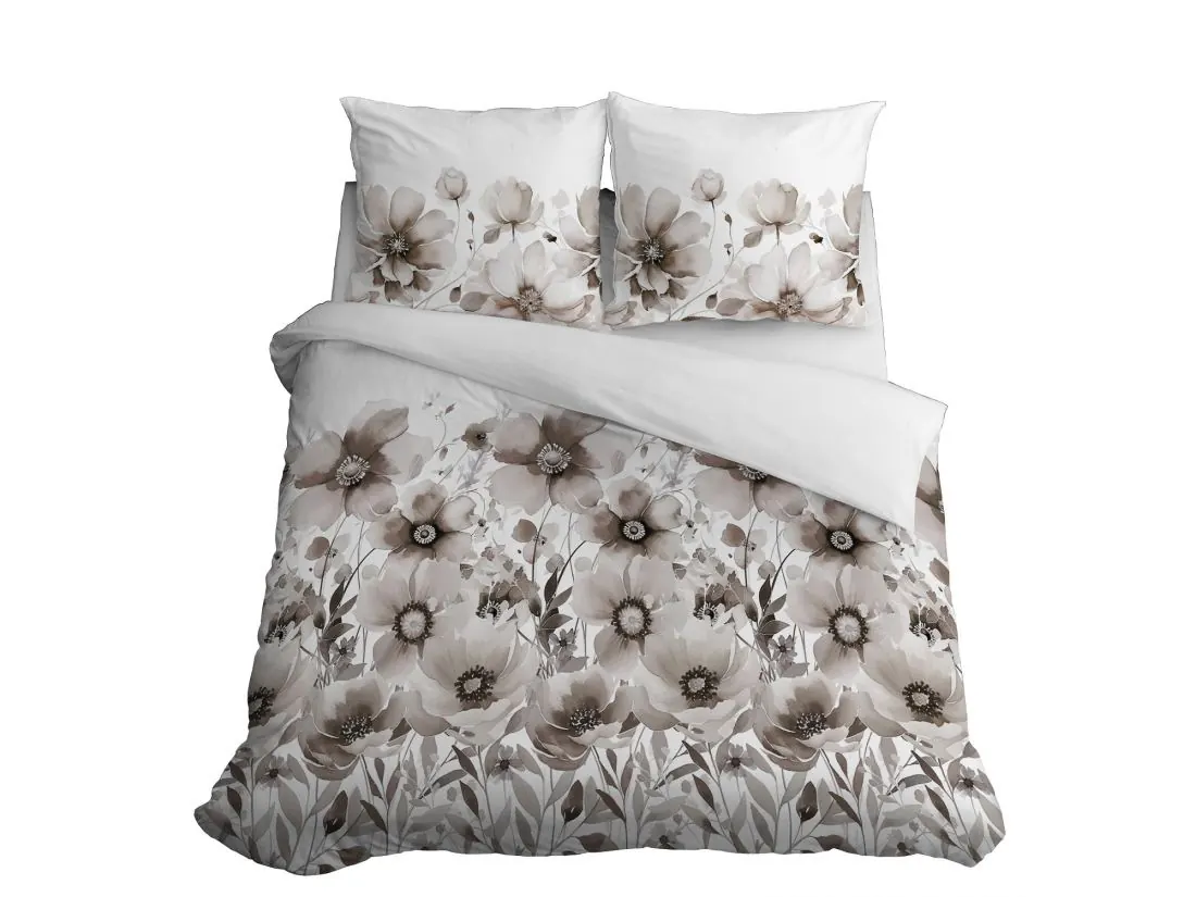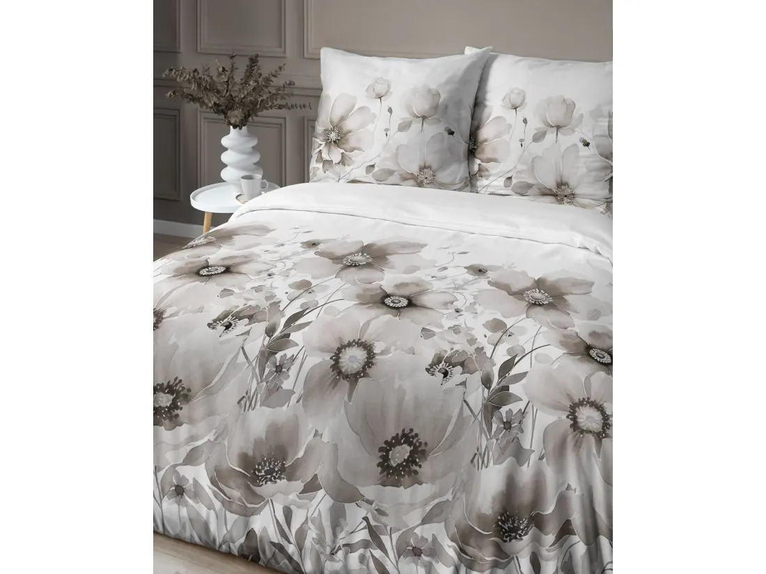 Pościel satynowa 160x200+2/70x80/ beżowe kwiaty wz 4923 b detexpol