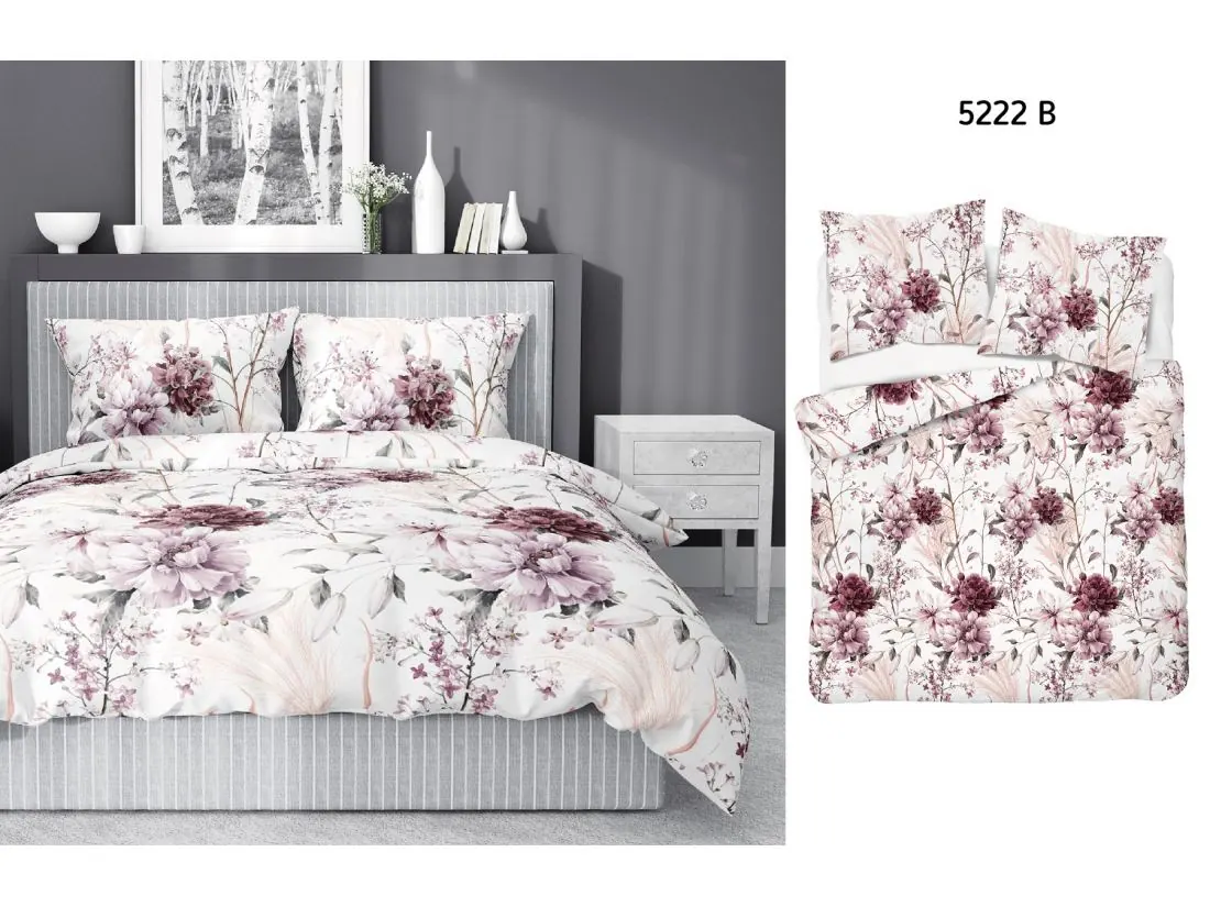 Pościel satynowa 160x200+2/70x80 bordowe piwonie wz. 5222 b detexpol