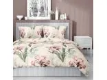 Pościel satynowa 160x200+2/70x80/ irysy na morelowym tle wz 5089 a detexpol