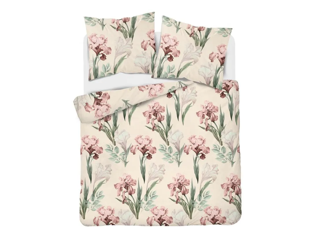 Pościel satynowa 160x200+2/70x80 irysy na morelowym tle wz 5089 a detexpol