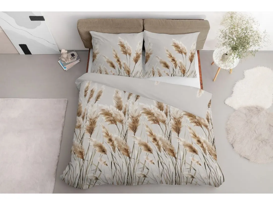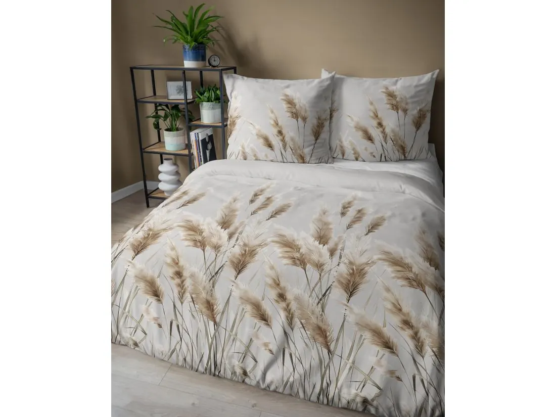 Pościel satynowa 160x200+2/70x80 kortaderia na szarym tle wz. 5329 b detexpol liście trawy