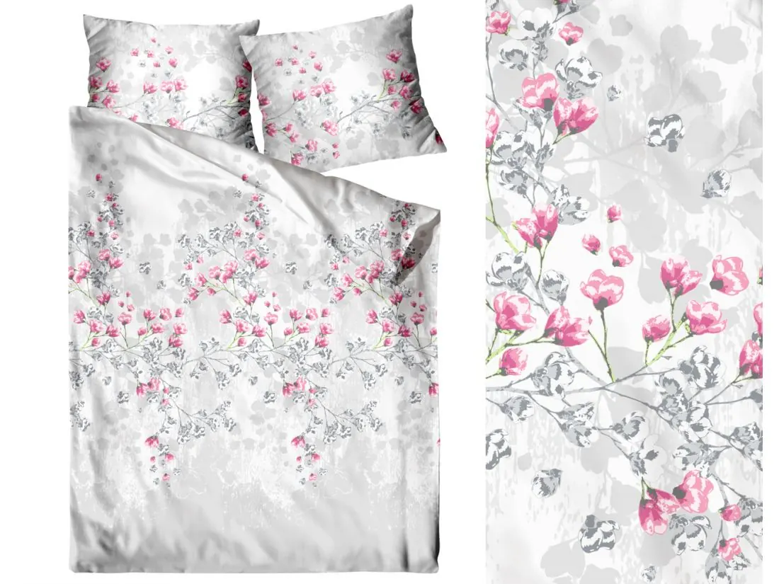 Pościel satynowa 160x200+2/70x80 kyoto gray frotex kwiatuszki