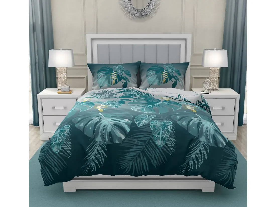 Pościel satynowa 160x200+2/70x80 liście monstery Platinium collection forest