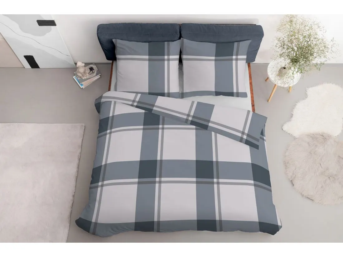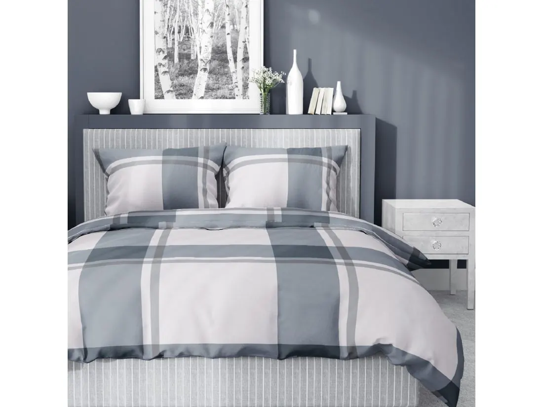 Pościel satynowa 160x200+2/70x80 szara kratka wz. 5218 a detexpol