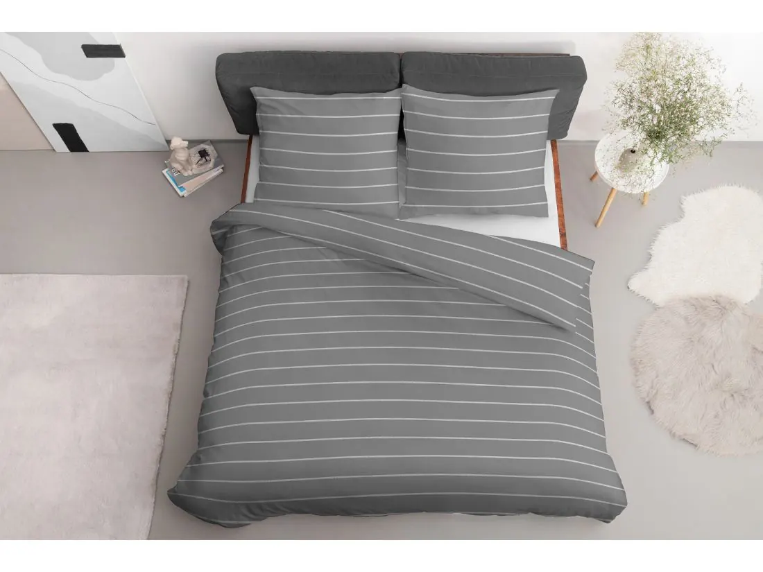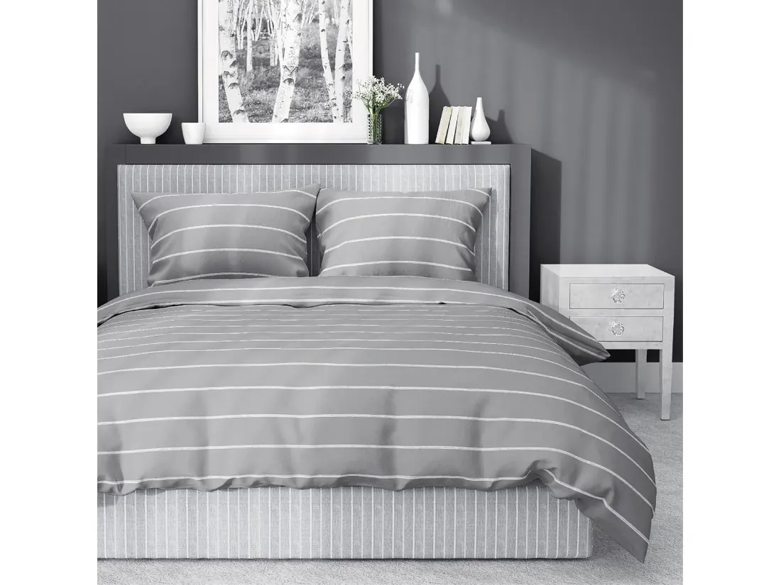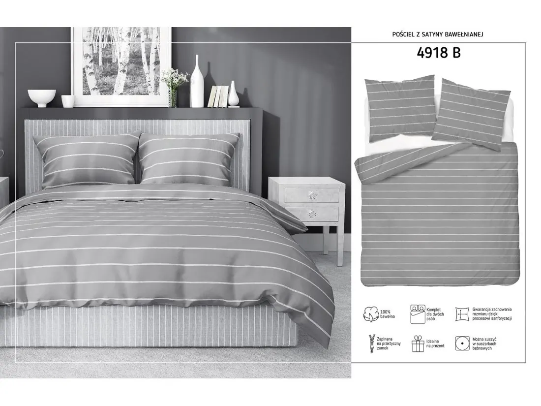 Pościel satynowa 220x200+2/70x80/ szare paski wz 4918 b detexpol
