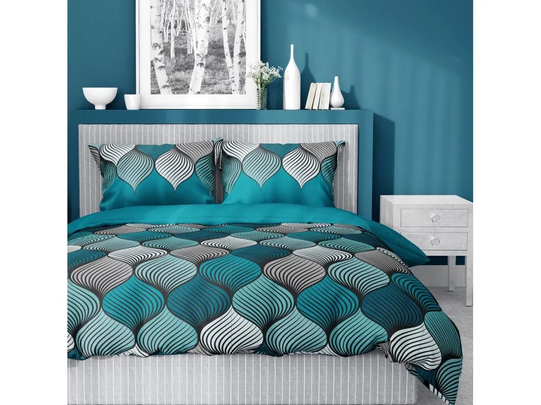 Pościel satynowa 160x200+2/70x80 turkusowa fantazja wz. 5226 a detexpol
