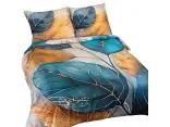 Wzór pościeli wyróżnia się nowoczesną estetyką inspirowaną naturą. Duże, graficzne liście w odcieniach turkusu, głębokiego granatu i złota tworzą wyrazistą, artystyczną kompozycję, która przyciąga wzrok i nadaje wnętrzu dynamicznego, a zarazem ciepłego charakteru. Ten odważny motyw idealnie łączy nowoczesny styl z naturalnymi akcentami, tworząc przestrzeń sprzyjającą zarówno relaksowi, jak i estetycznej przyjemności. Zaawansowana technologia druku cyfrowego gwarantuje wysoką jakość detali i trwałość kolorów, nawet po wielu praniach. Praktyczny zamek błyskawiczny, dyskretnie ukryty pod elegancką plisą, dopełnia całości, zapewniając wygodę i estetykę.