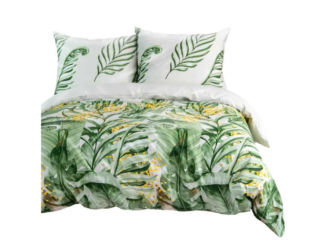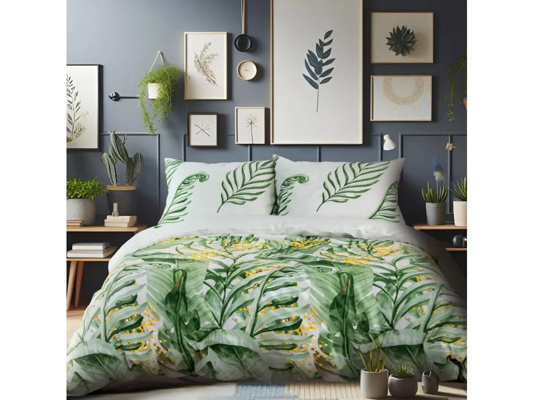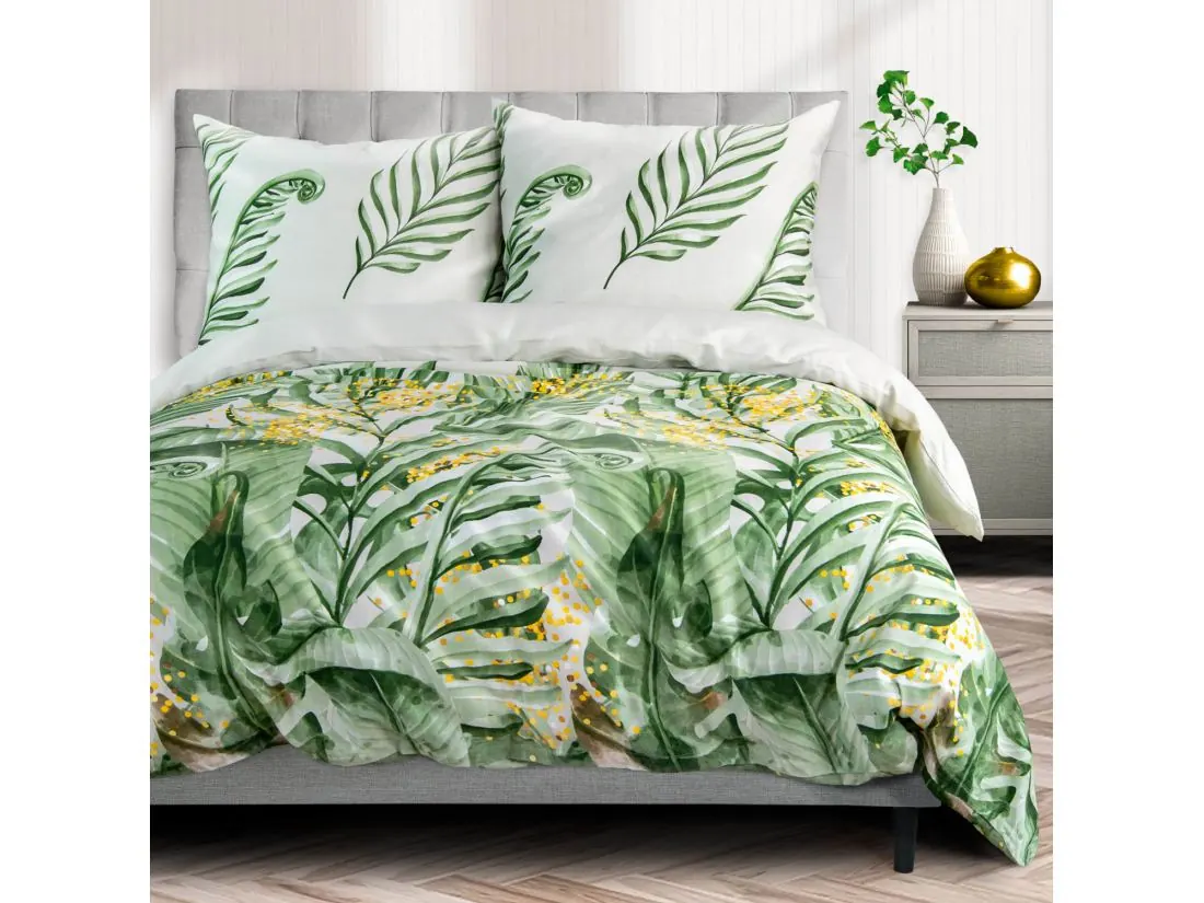 Pościel satynowa 180x200+2/70x80/ Love zielone liście