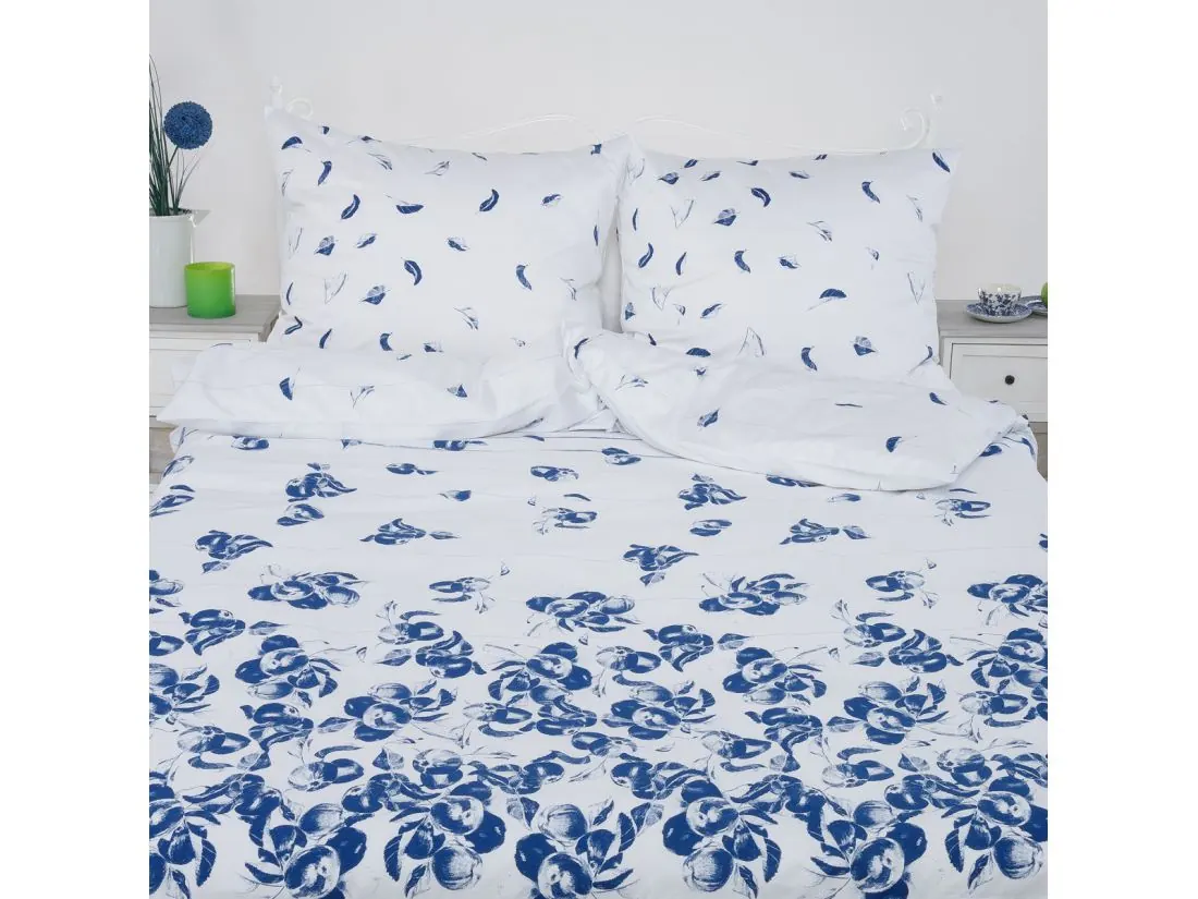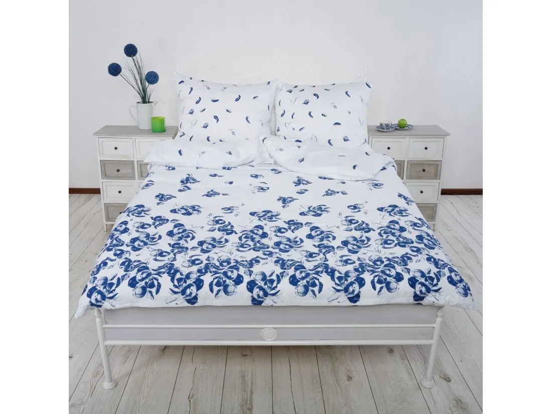 Pościel satynowa 180x200+2/70x80 sweet sofia niebieski ogród slodkiesny Andropol