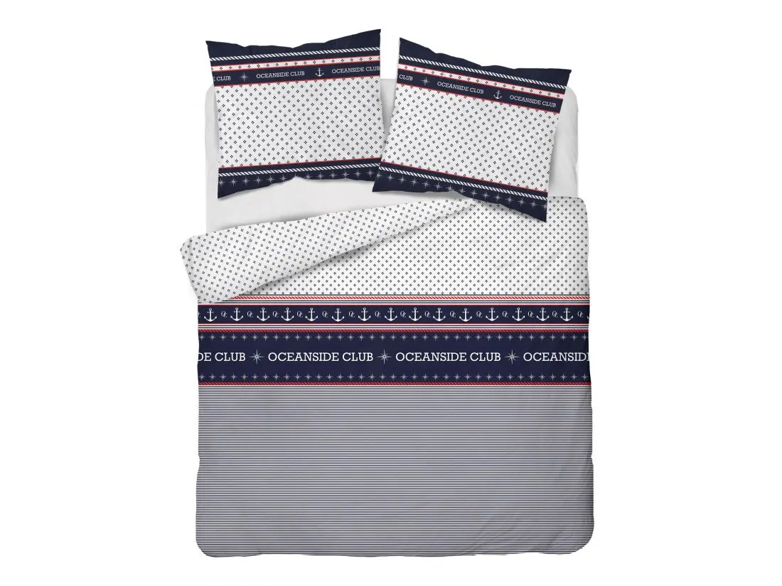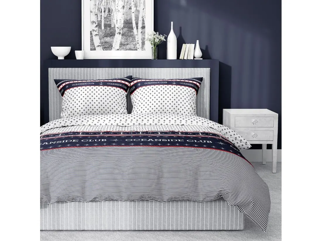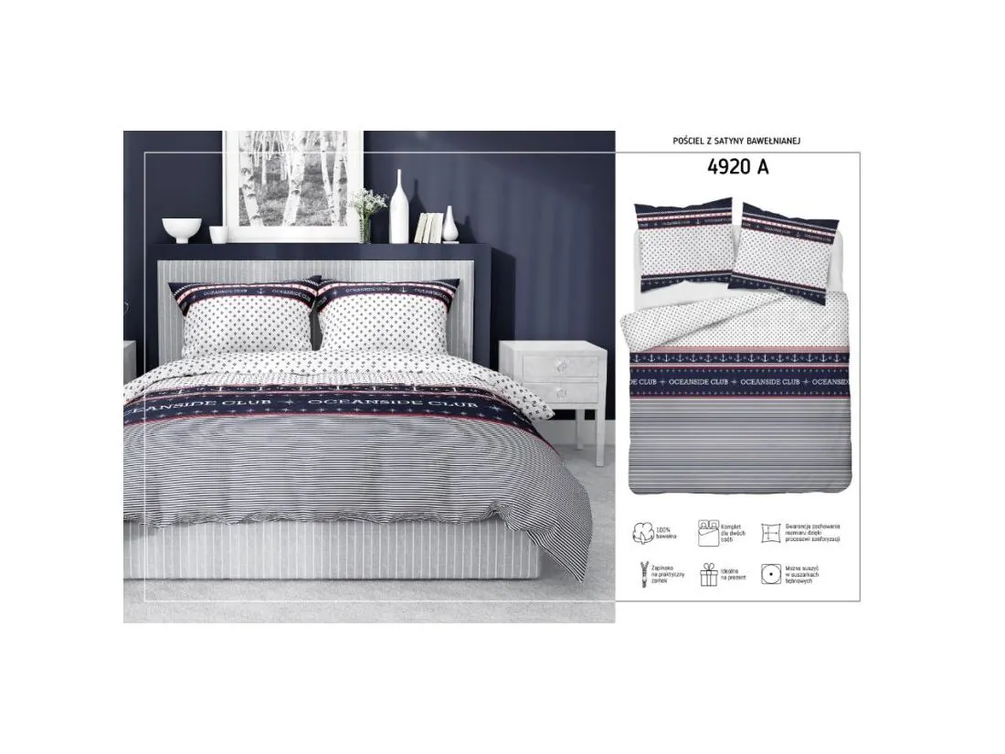 Pościel satynowa 220x200 +2/70x80/ oceanside club wz 4920 a biało granatowa detexpol