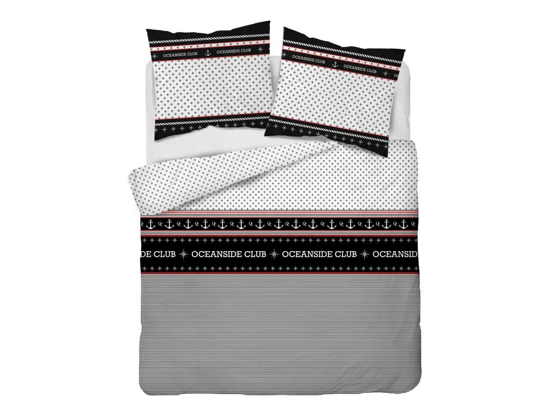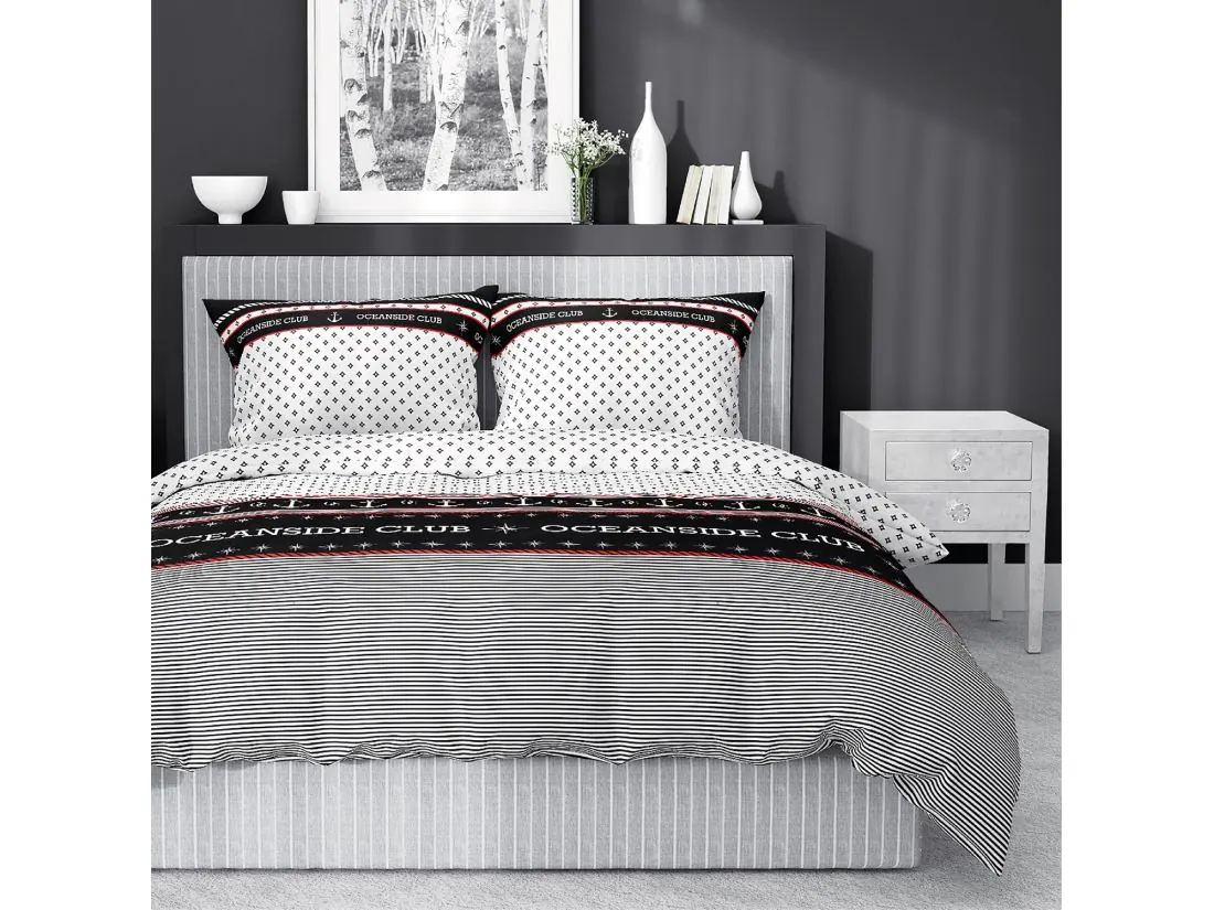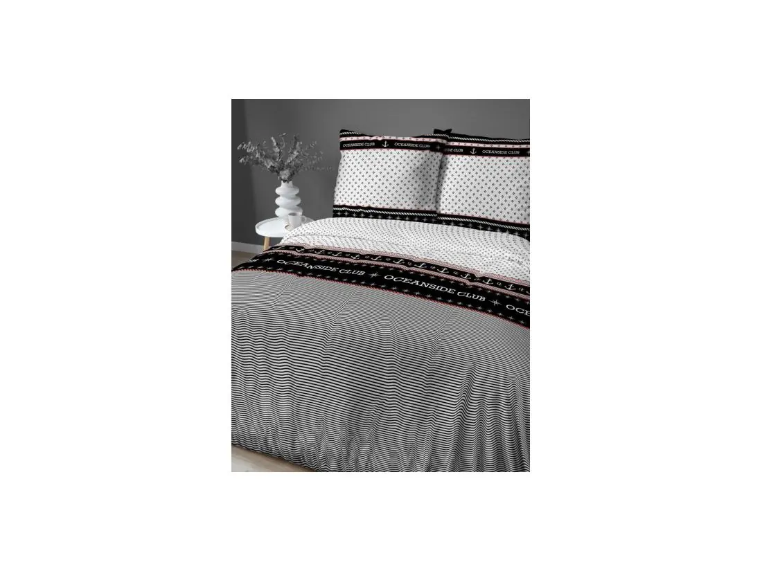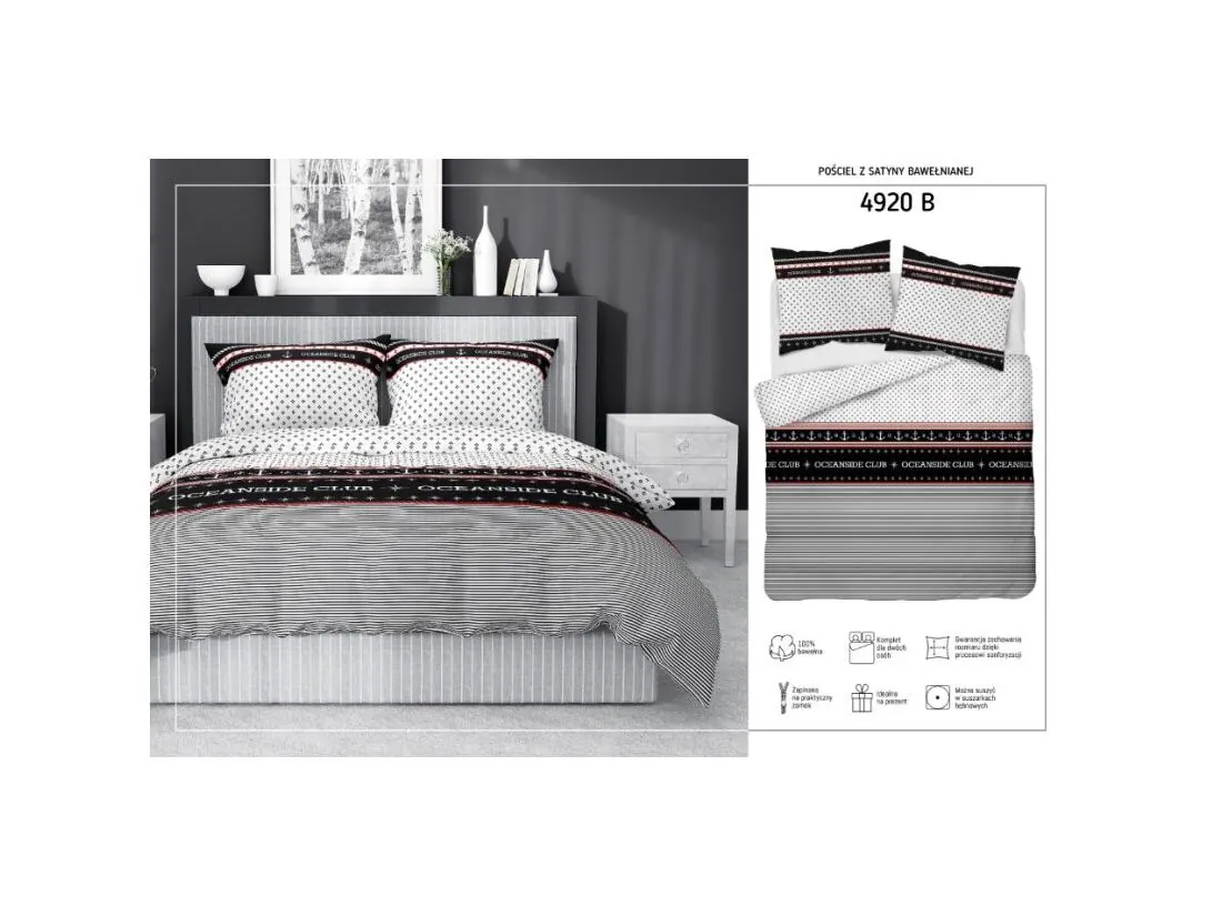 Pościel satynowa 220x200 +2/70x80/ oceanside club wz 4920 b biało czarna detexpol