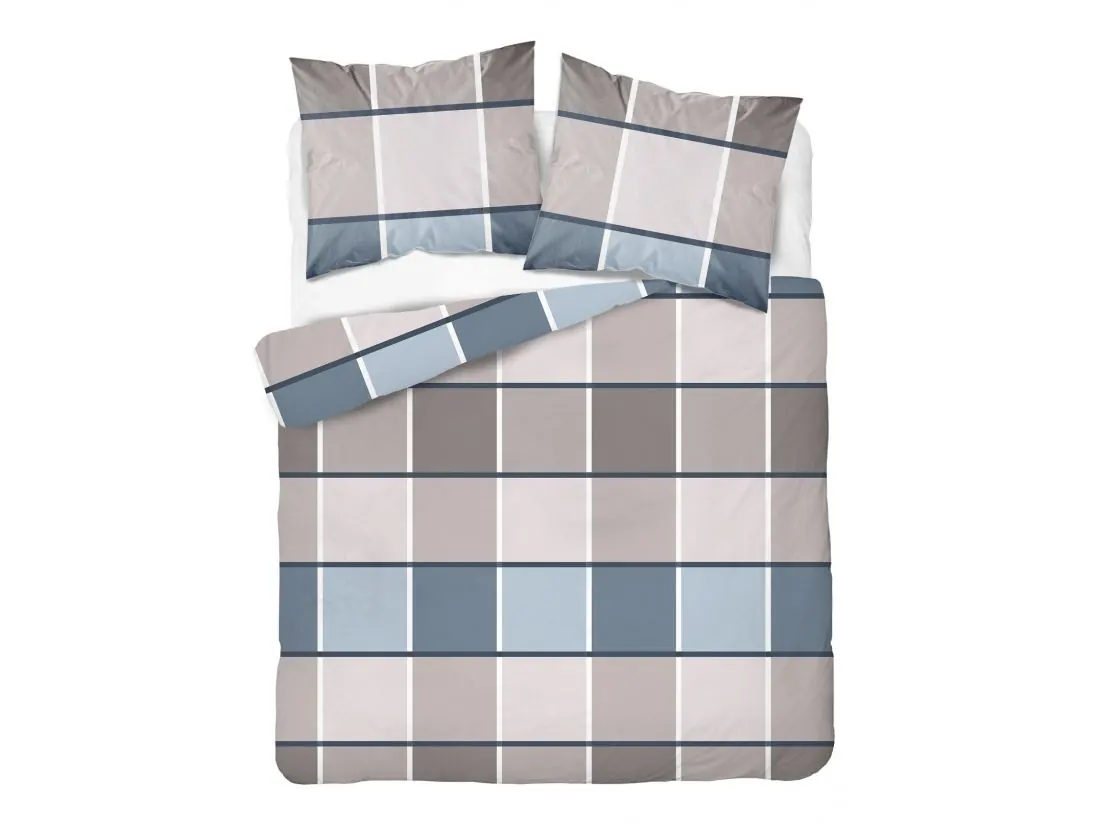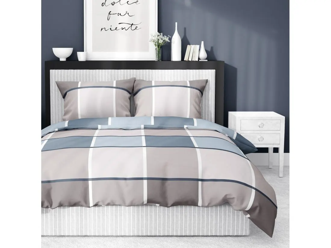 Pościel satynowa 220x200 niebiesko beżowa krata 5544 b