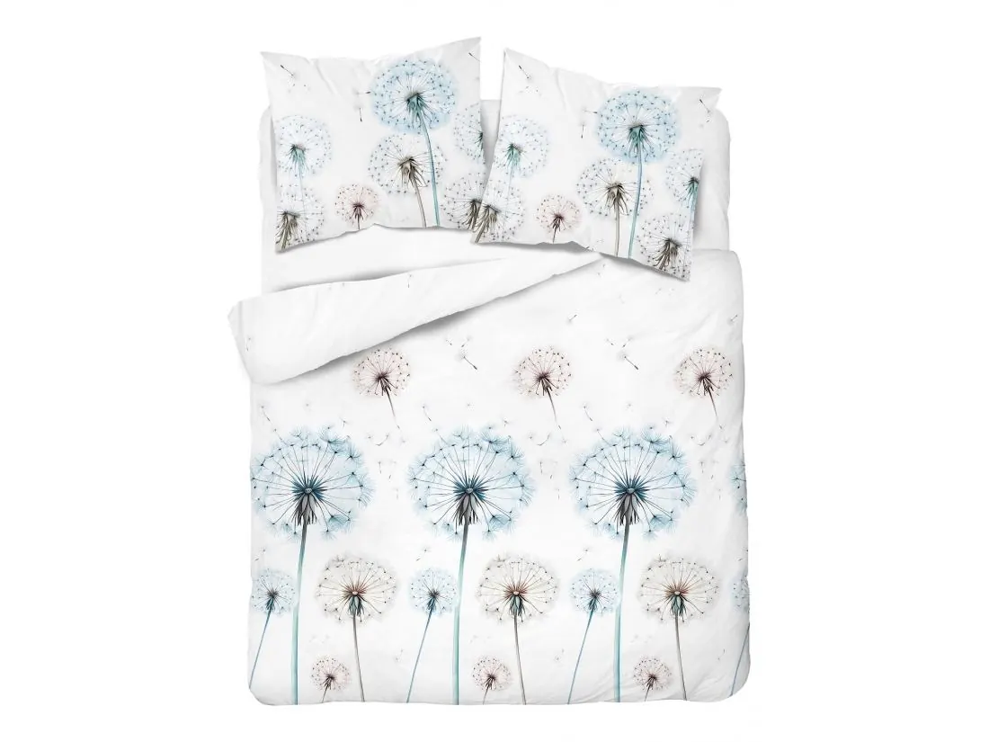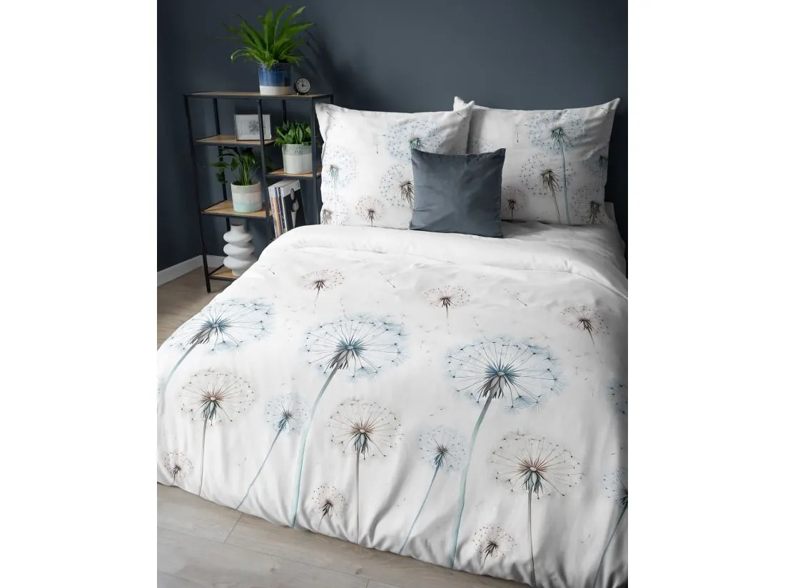 Pościel satynowa 220x200 turkusowe dmuchawce na białym tle 5542 a