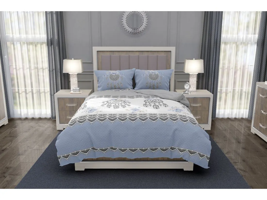 Pościel satynowa 220x200+2/70x80 Boho Silver collection łapacz snów niebieski
