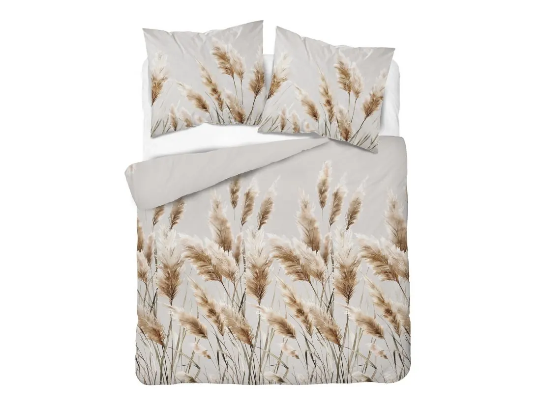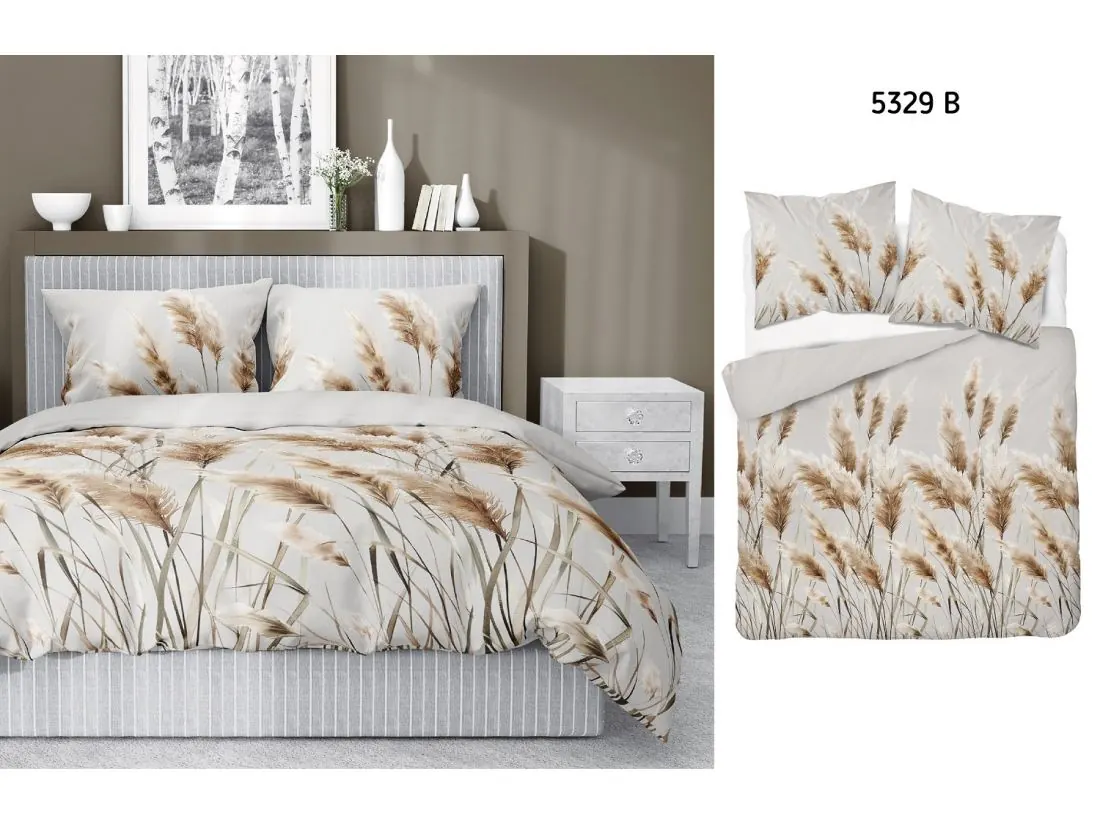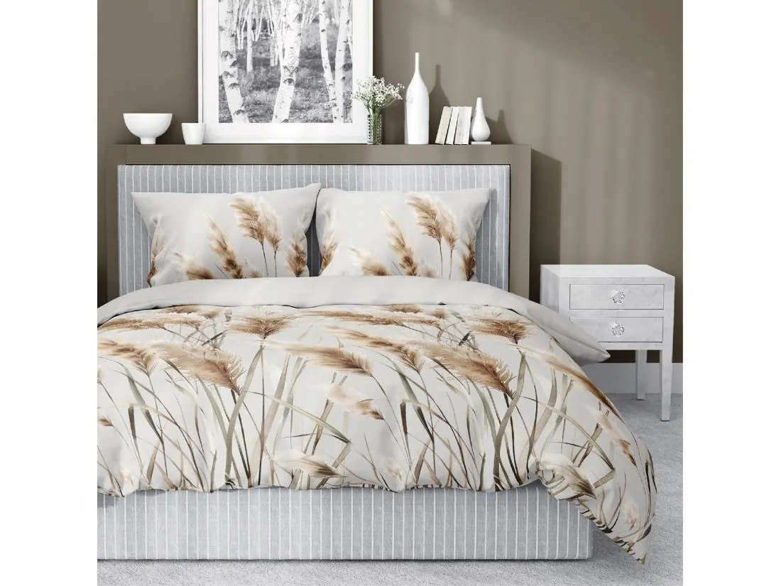 Pościel satynowa 220x200+2/70x80 kortaderia na szarym tle wz. 5329 b detexpol liście trawy