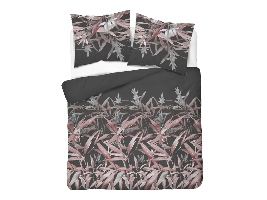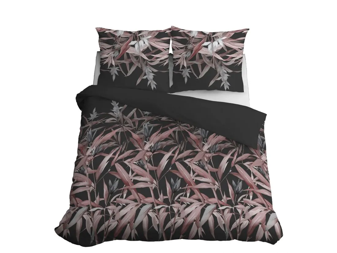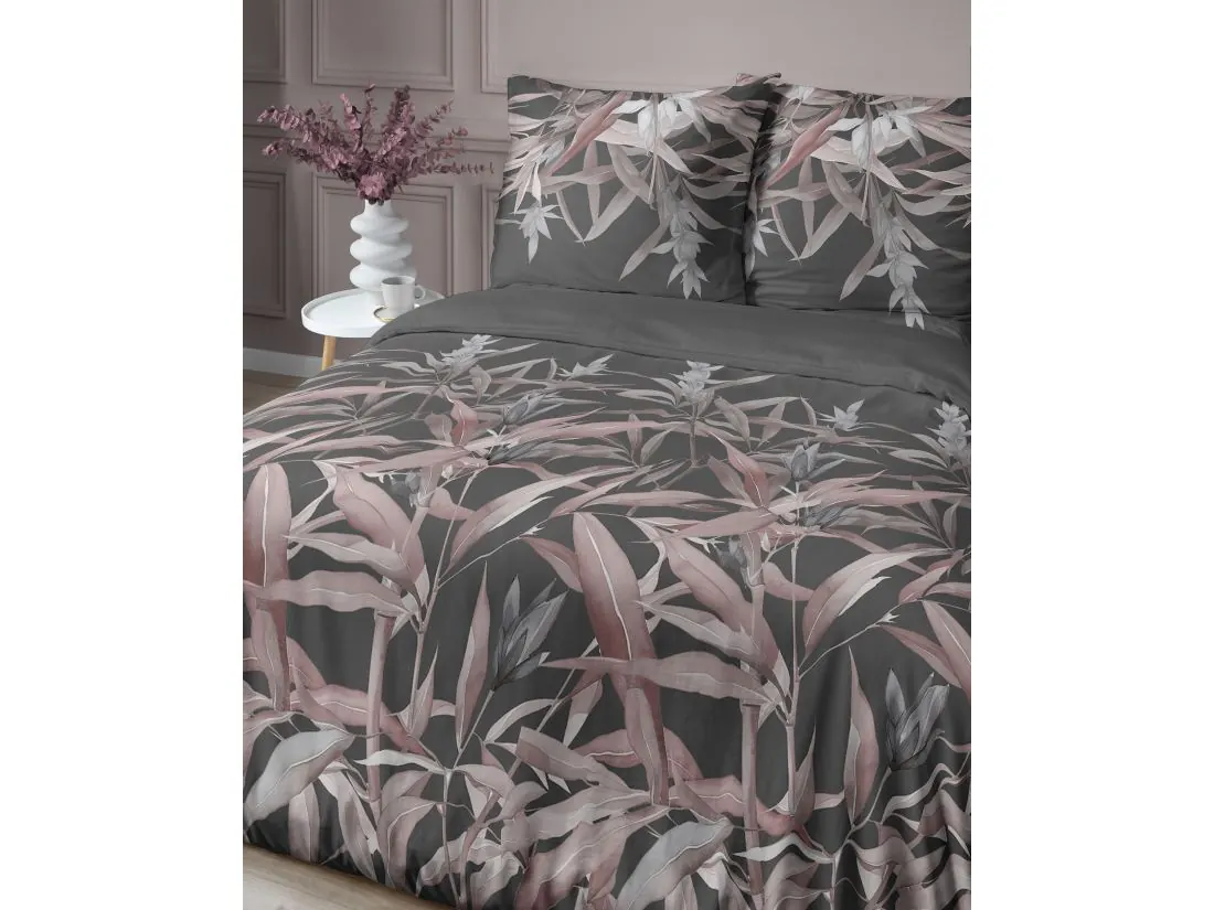 Pościel satynowa 220x200+2/70x80/ liście trawy na czarnym tle bawolia wz 4922 b detexpol