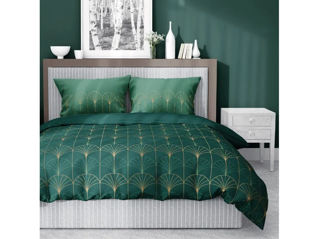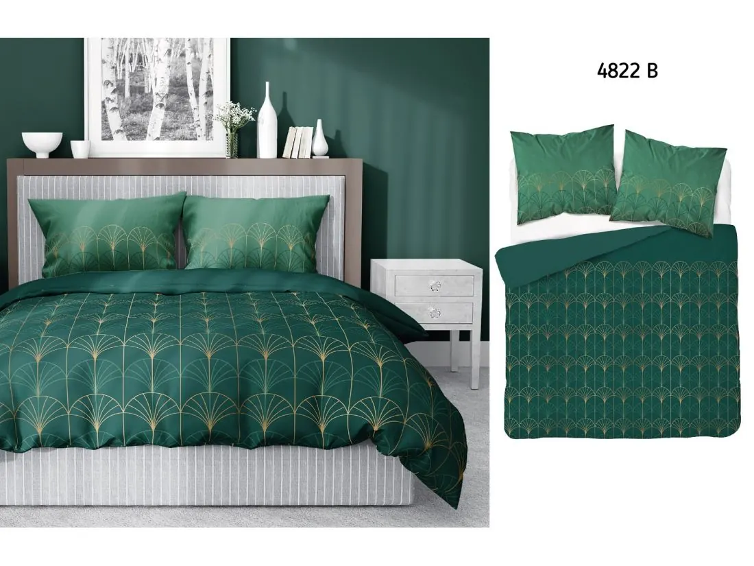 Pościel satynowa 220x200+2/70x80 wzór na zielonym tle wz. 4822 b detexpol