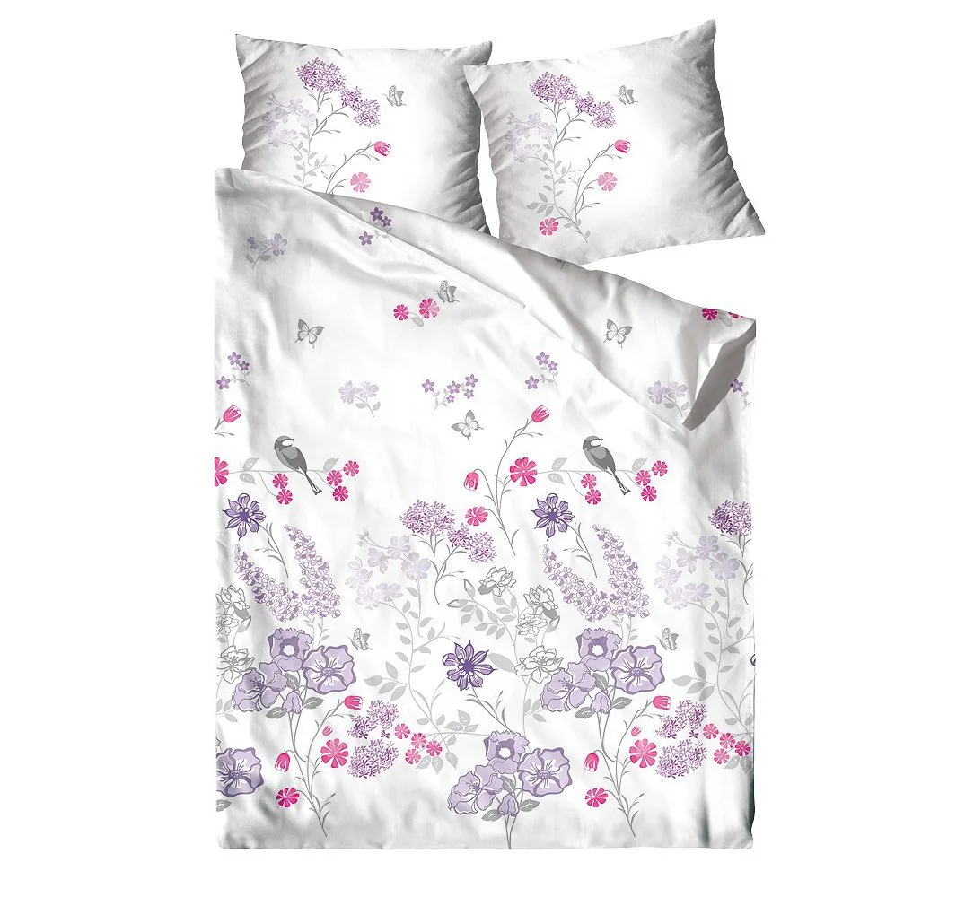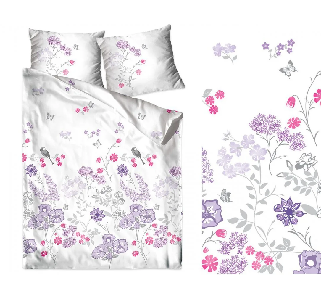 Urocze delikatne kwiatki, słodkie ptaszki na pościeli w kolorze fioletowo wrzosowym na białym tle intrygują oraz przyciągają wzrok. Stylistyka pościeli to połączenie tradycji z nowoczesnością tworząca niezwykłą elegancką kompozycje która nada niecodzienny charakter oraz wyjątkowy urok każdej sypialni.