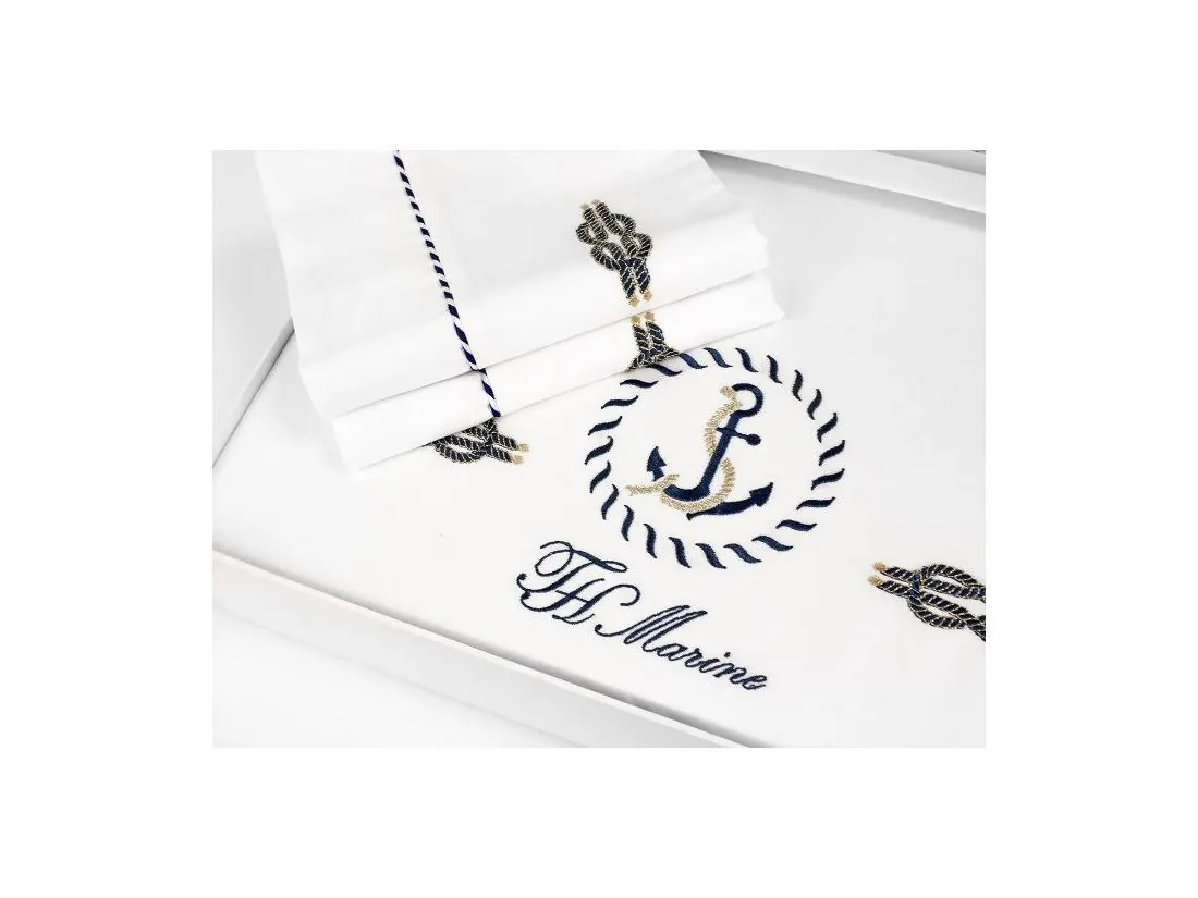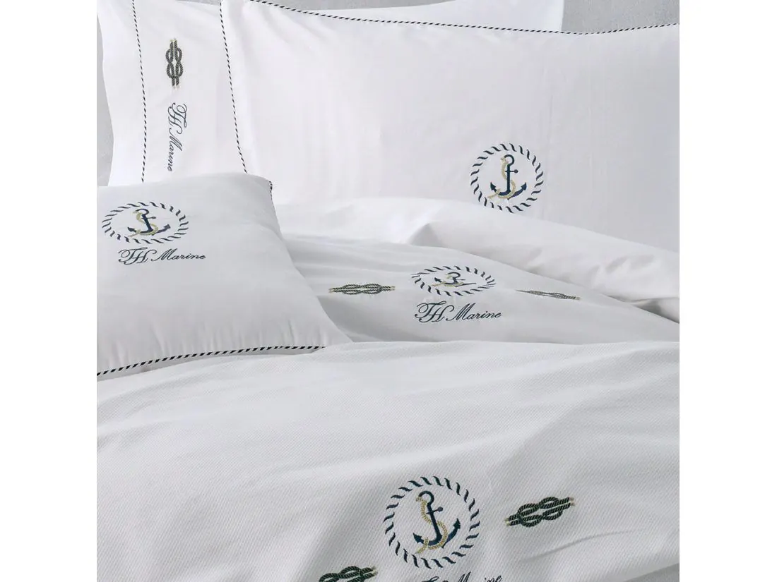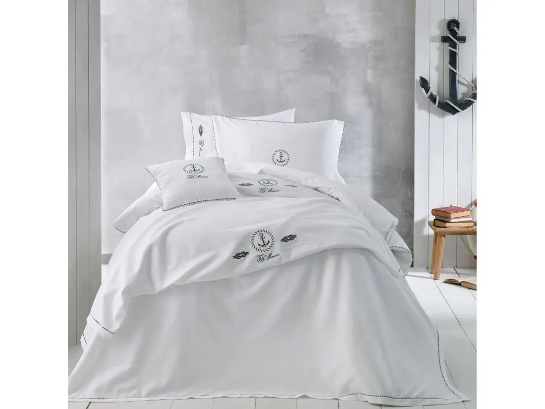 Pościel satynowa haftowana ekskluzywna Ancora White 200x220 Tivolyo Embroidery Satin marynarski