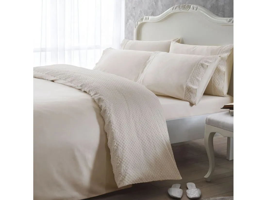 Pościel Haftowana 6 elementowa wzór Marlow Beige w rozmiarze 200x220 cm firmy TIVOLYO HOME z kolekcji Embroidery Satin, to ekskluzywna pościel dla każdego kto w swojej sypialni ceni luksus i elegancje.