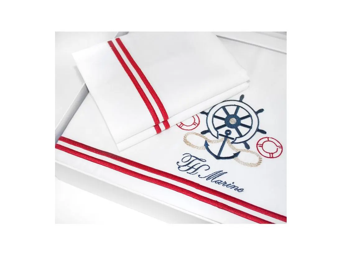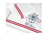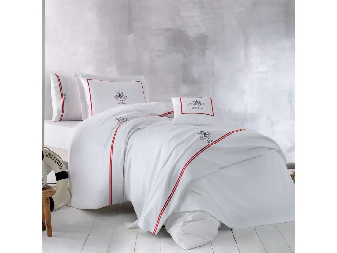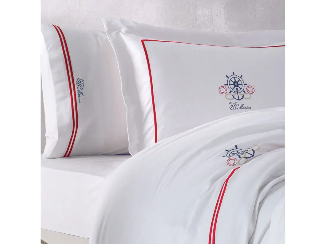 Pościel satynowa haftowana ekskluzywna Navy White 200x220 Tivolyo Embroidery Satin marynarski