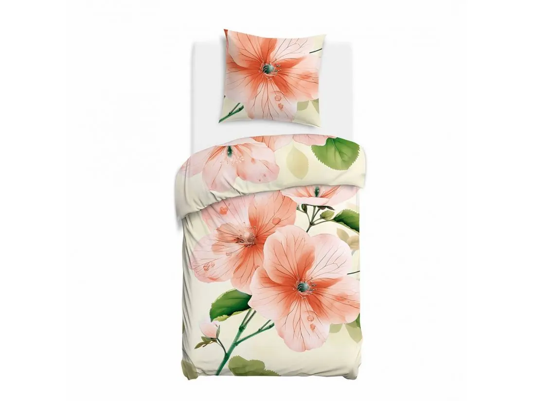 Pościel z satyny bawełnianej 140x200 Hibiskusy i Blady Róż – Druk Cyfrowy