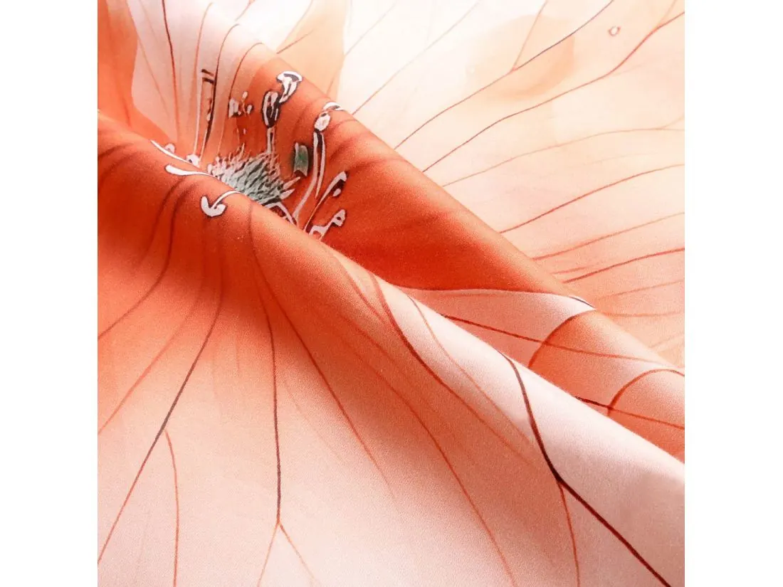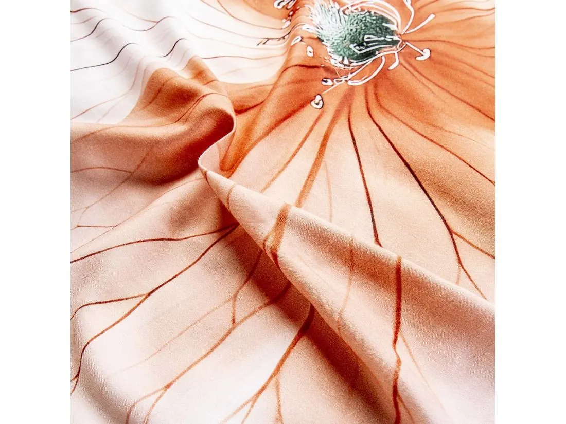 Pościel Satynowa Hibiskus Morelowy 140x200 Delikatny Kwiatowy Wzór