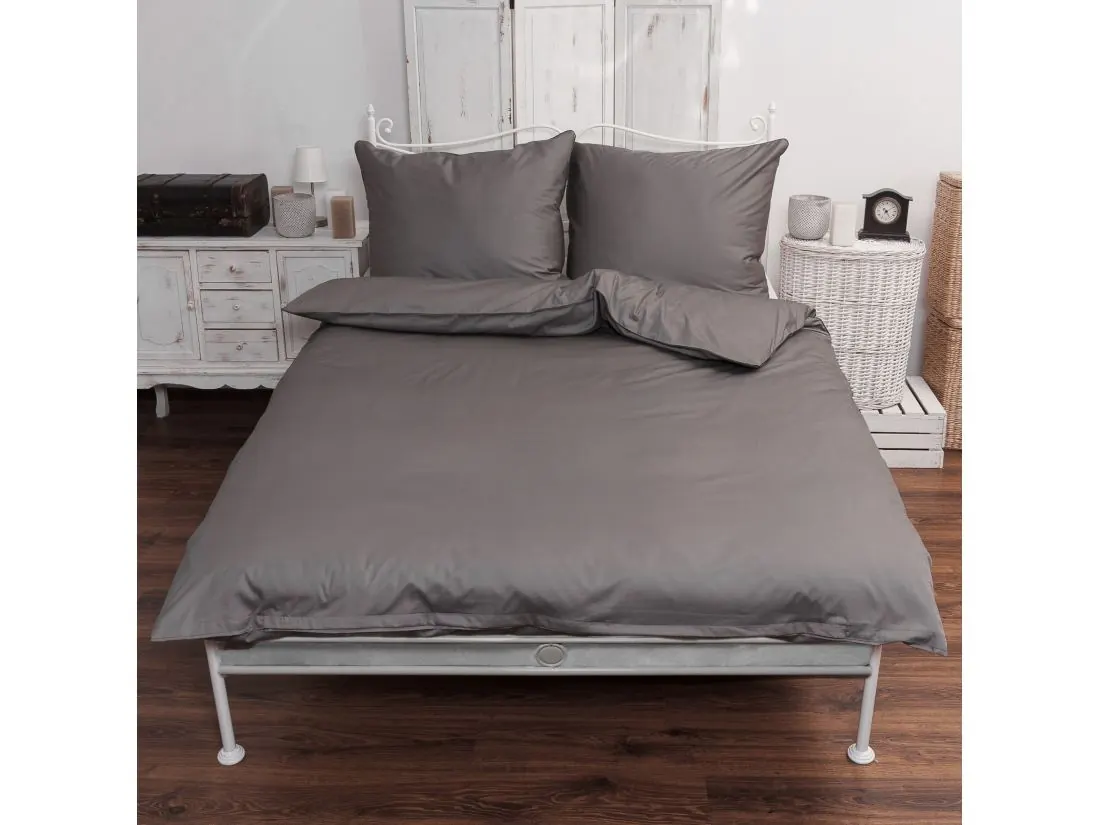 Pościel satynowa jednobarwna exclusive Monako z lamówką 160x200 +2/70x80 ciemny popiel andropol