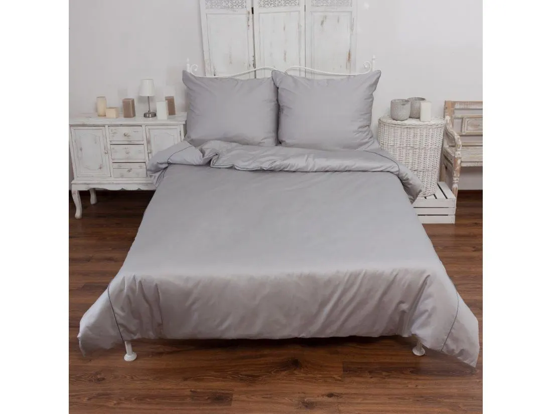 Pościel satynowa jednobarwna exclusive Monako z lamówką 200x220 +2/70x80 jasny popiel andropol