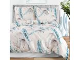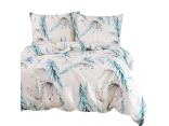 Pościel satynowa Love 140x200+1/70x80/ biała w turkusowe liście, kwiat kopru