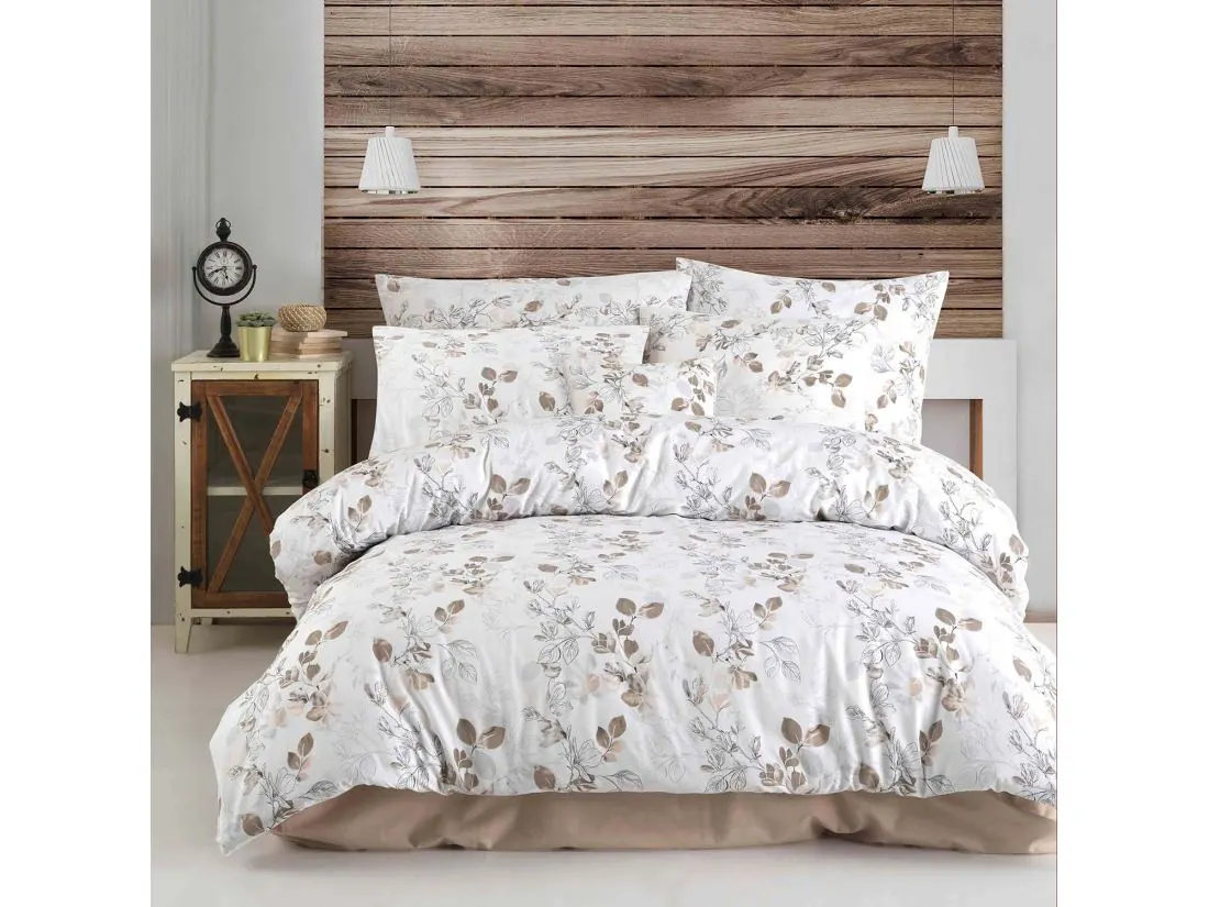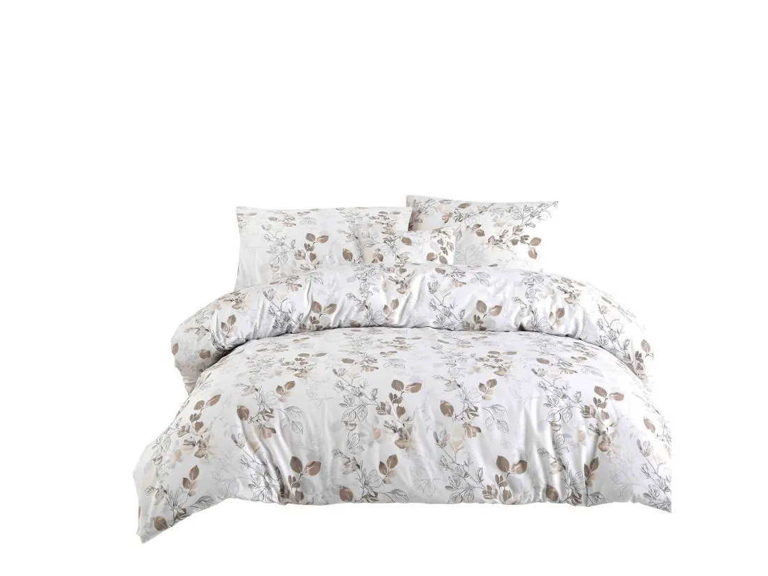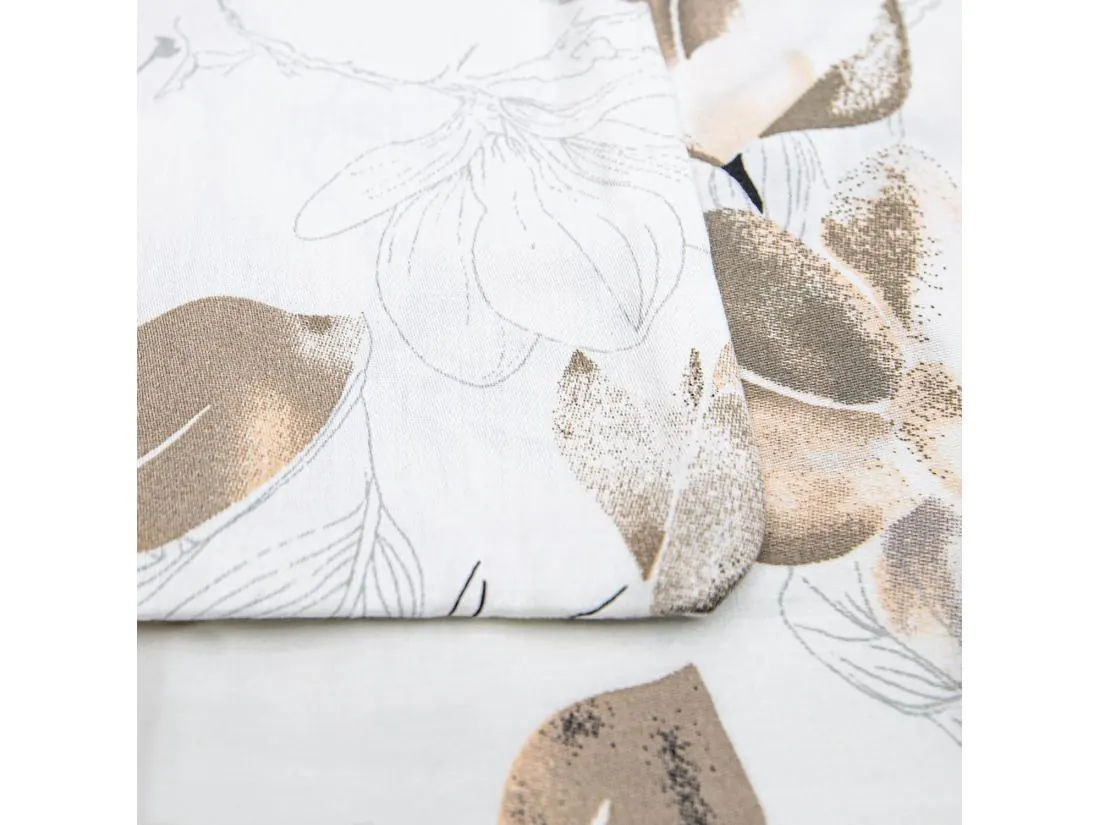 Pościel satynowa Love 140x200+1/70x80 brązowe listki na białym tle 1537