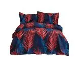 Pościel satynowa Love 140x200+1/70x80/ czerwono niebieskie liscie palmy 1519
