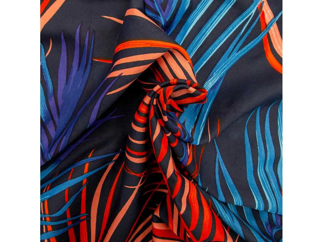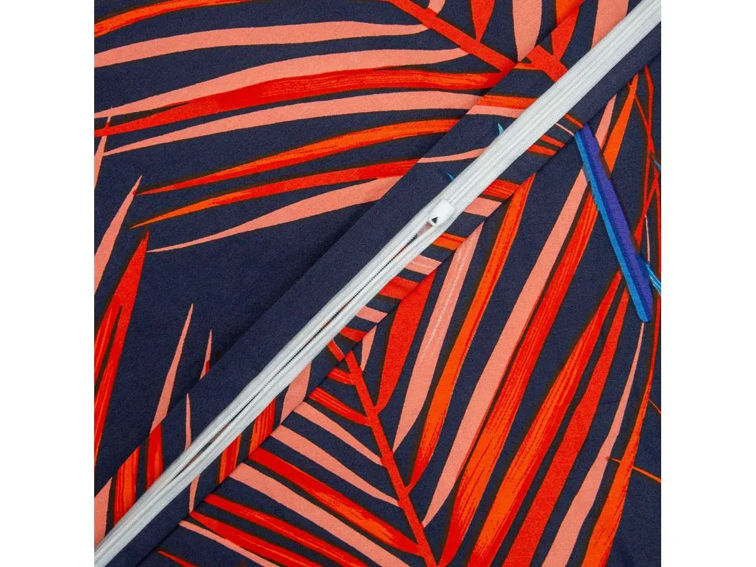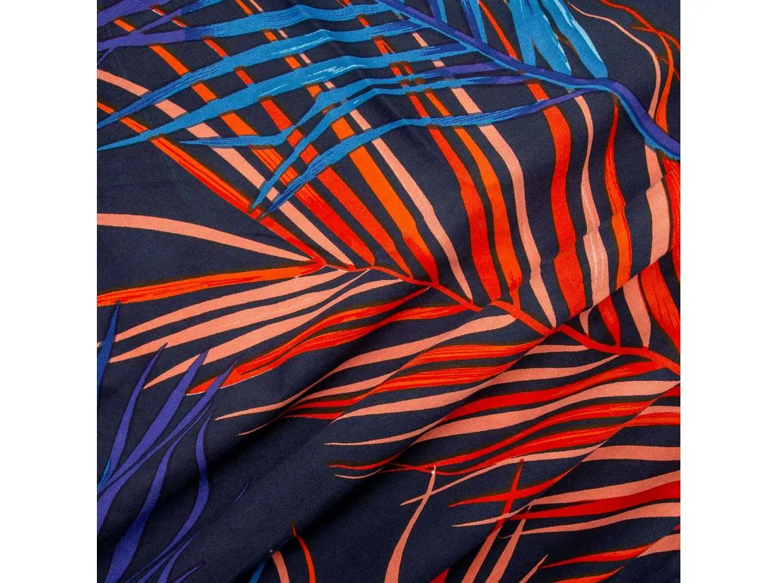 Pościel satynowa Love 140x200+1/70x80/ czerwono niebieskie liscie palmy