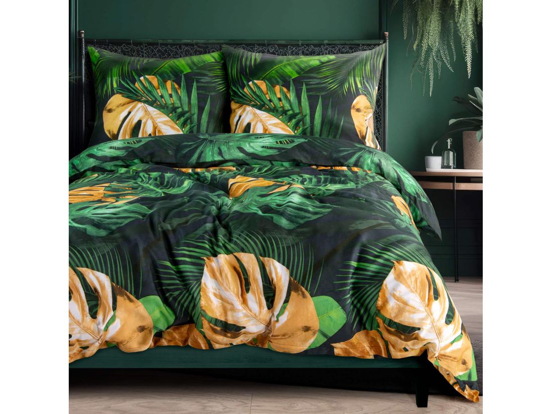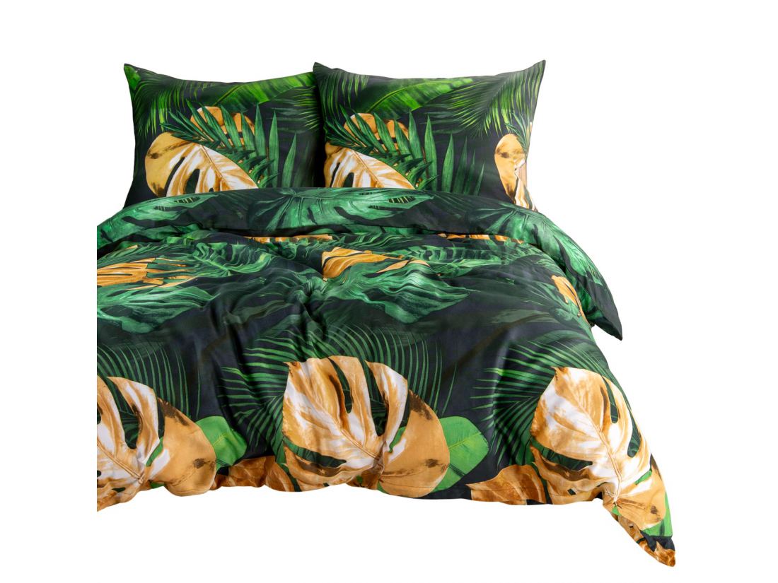 Pościel satynowa Love 140x200+1/70x80/ liście monstery
