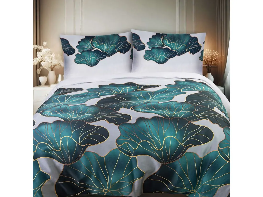 Motyw zielonych liści klonu na pościeli wprowadza do wnętrza nutę świeżości i natury, która świetnie komponuje się z różnymi stylami aranżacyjnymi – od nowoczesnych, po klasyczne i rustykalne. Wyraziste, ale jednocześnie stonowane wzornictwo sprawia, że pościel staje się efektownym akcentem dekoracyjnym, dodając sypialni przytulności i harmonii. Połączenie eleganckiego wzoru z wysokiej jakości materiałem gwarantuje zarówno piękny wygląd, jak i trwałość oraz komfort użytkowania, które będą cieszyć przez długie lata.