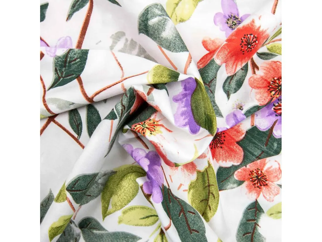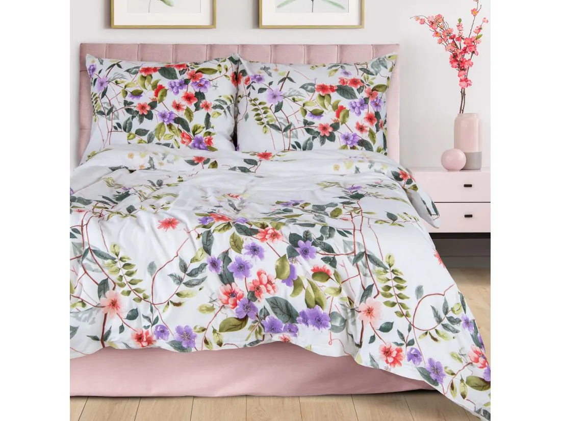 Pościel satynowa Love 220x200+2/70x80/ biała kolorowe kwiaty