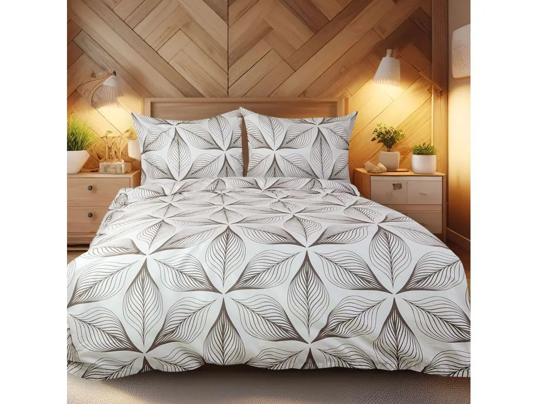 Elegancki, biały komplet pościeli ozdobiony jest brązowymi, symetrycznymi liśćmi, co nadaje jej subtelny, ale wyrazisty charakter. Taki wzór doskonale wpasowuje się zarówno w nowoczesne, jak i klasyczne aranżacje wnętrz, dodając im szyku i przytulności. Pościel z satyny bawełnianej to nie tylko stylowy element dekoracyjny, ale także inwestycja w komfort i jakość snu, który odczujesz każdego wieczoru.