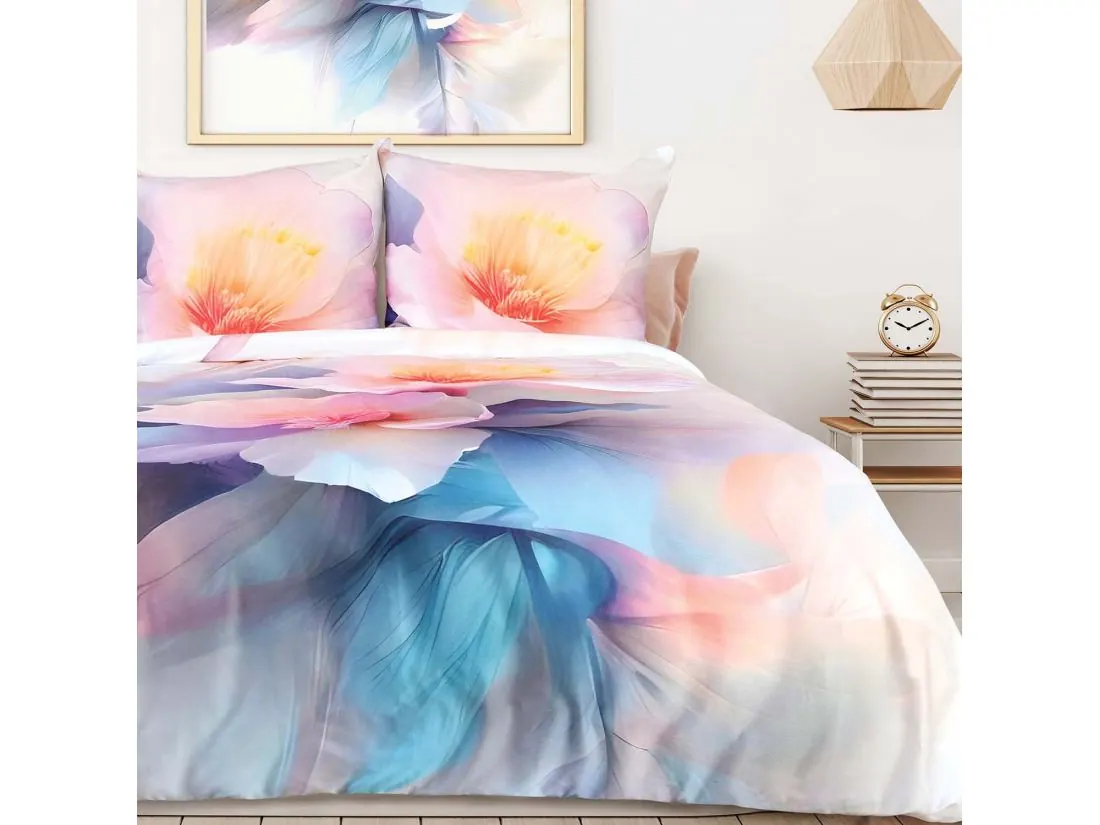 Ten wzór idealnie wpisuje się w klimat boho oraz skandynawski dzięki subtelnym akwarelom i pastelowej kolorystyce. Dzięki asymetrycznej kompozycji (pojedynczy kwiat na poszewce i bogatszy bukiet na kołdrze) świetnie uzupełni nowoczesne sypialnie, dodając im lekkości i artystycznego sznytu bez efektu przytłoczenia.