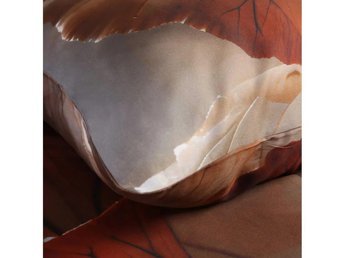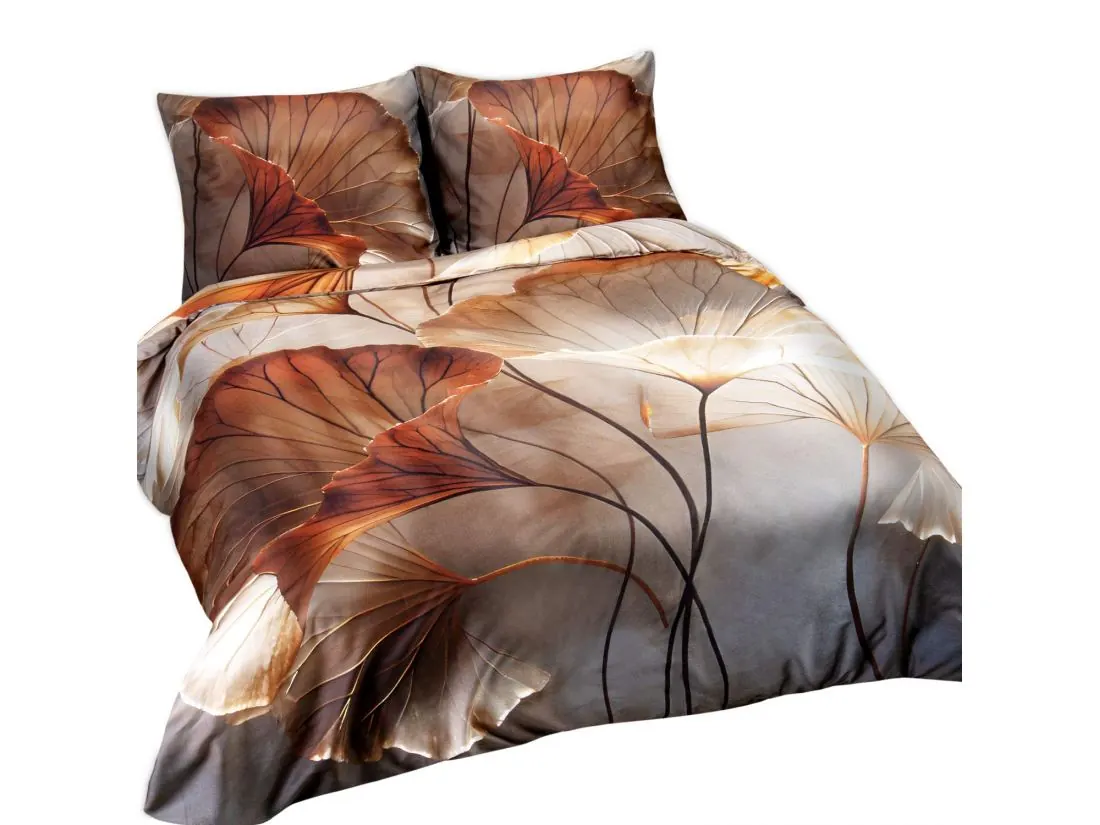 Wzór pościeli inspirowany jest pięknem natury i przedstawia delikatne liście, utrzymane w ciepłej, ziemistej palecie barw. Subtelne odcienie beżu, złota i rdzawego brązu układają się w harmonijną kompozycję, która przywołuje skojarzenia z pierwszymi promieniami słońca filtrującymi się przez wiosenny las. Ten naturalny motyw wprowadza do wnętrza poczucie spokoju, świeżości i równowagi, tworząc idealną przestrzeń do relaksu.