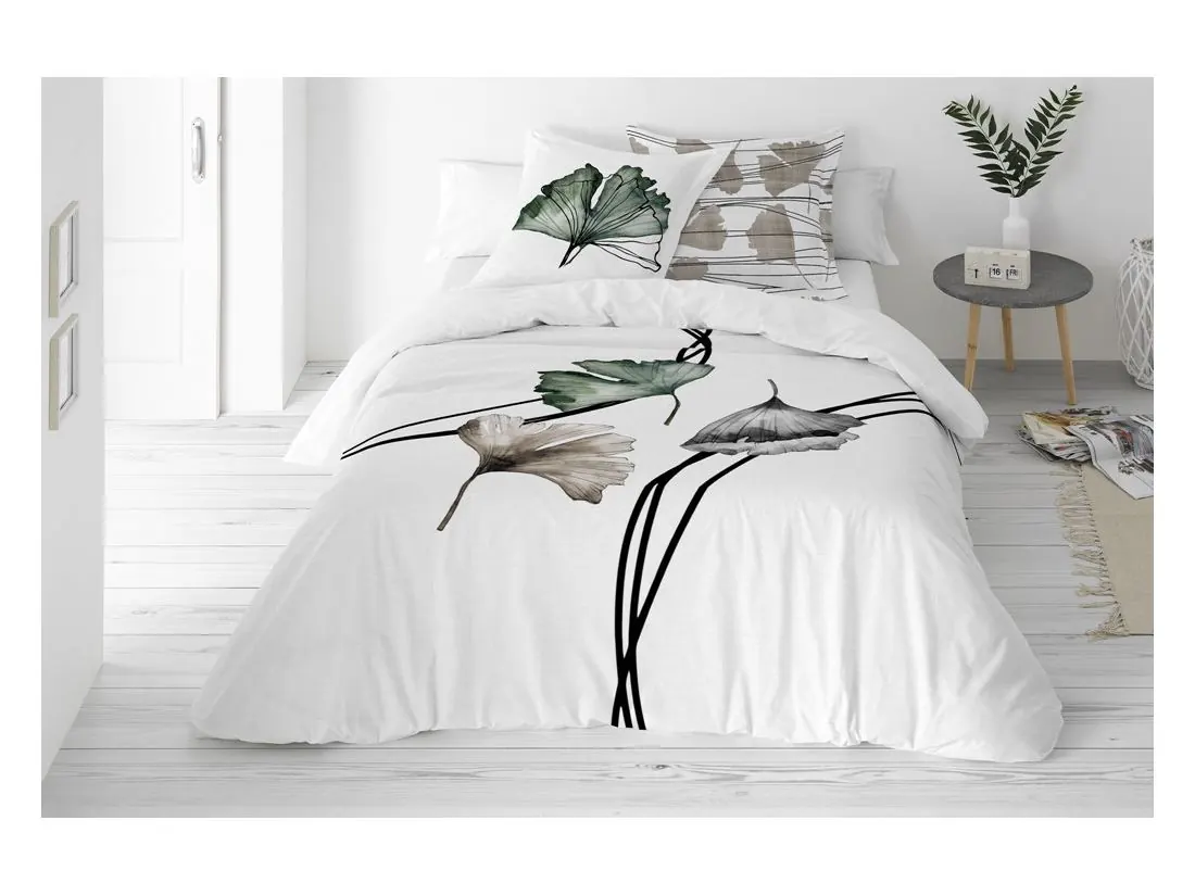 Pościel satynowo – bawełniana 160x200 +2/70x80 liście miłorzębu satyna prestige 17