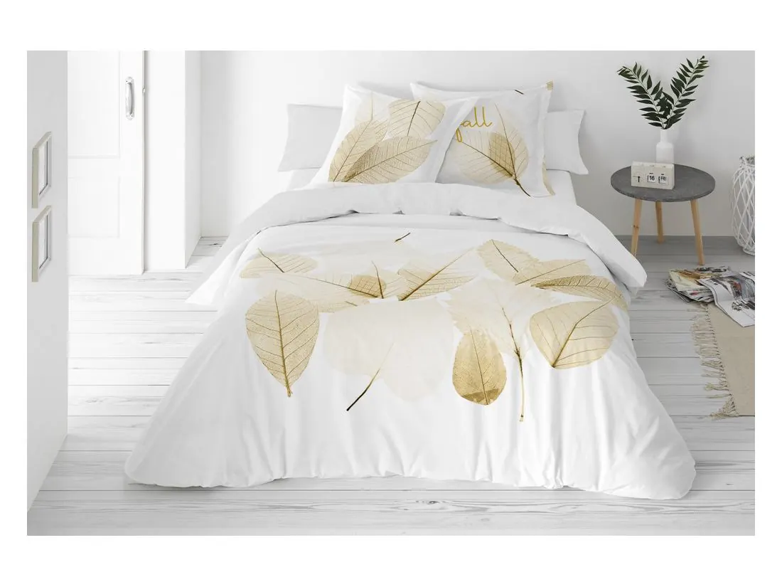Pościel satynowo – bawełniana 160x200 +2/70x80 złote liście satyna prestige 18