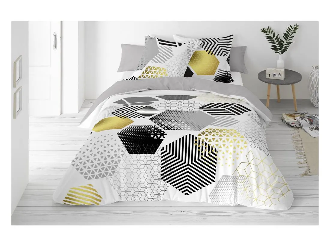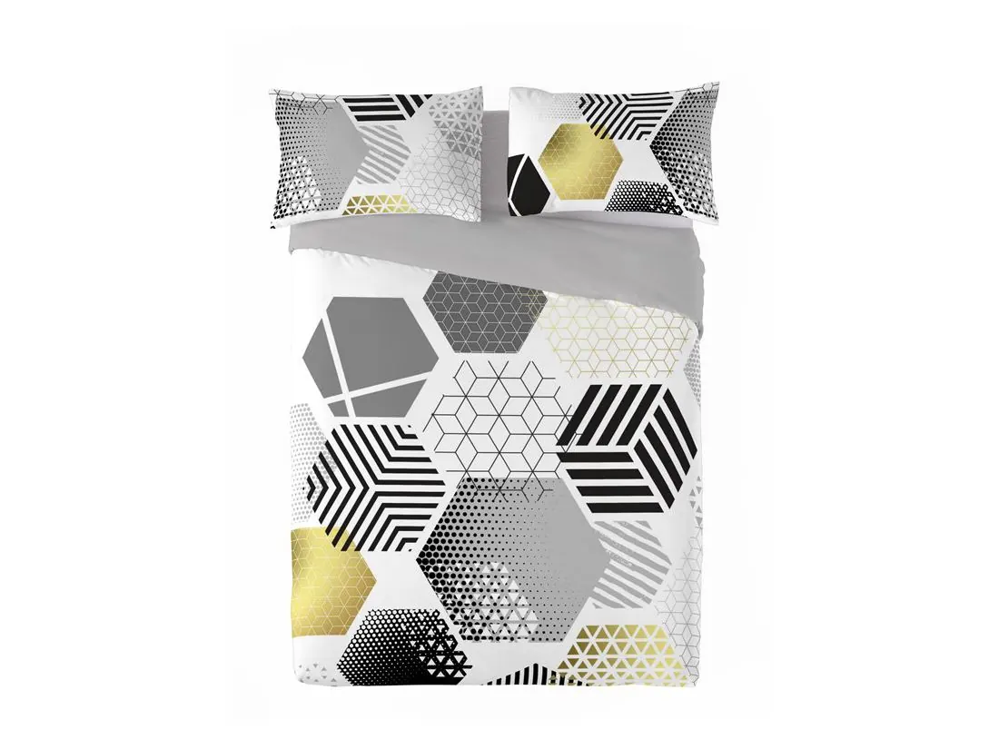 Pościel satynowo – bawełniana 220x200 +2/70x80 czarne heksagony satyna prestige 19