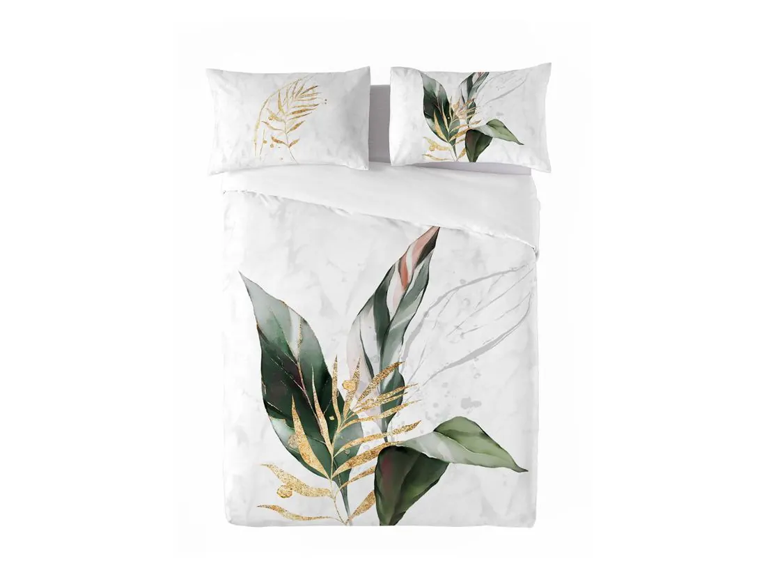 Pościel satynowo – bawełniana 220x200 +2/70x80 zielono złote liście satyna prestige 22