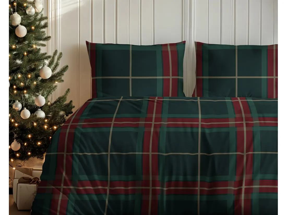 Pościel bawełniana świąteczna 160x200 z klasycznym wzorem szkockiej kraty to połączenie jakości, komfortu i stylu, które doskonale wpisze się w zimowy, świąteczny wystrój Twojej sypialni, wprowadzając ciepłą i przytulną atmosferę.